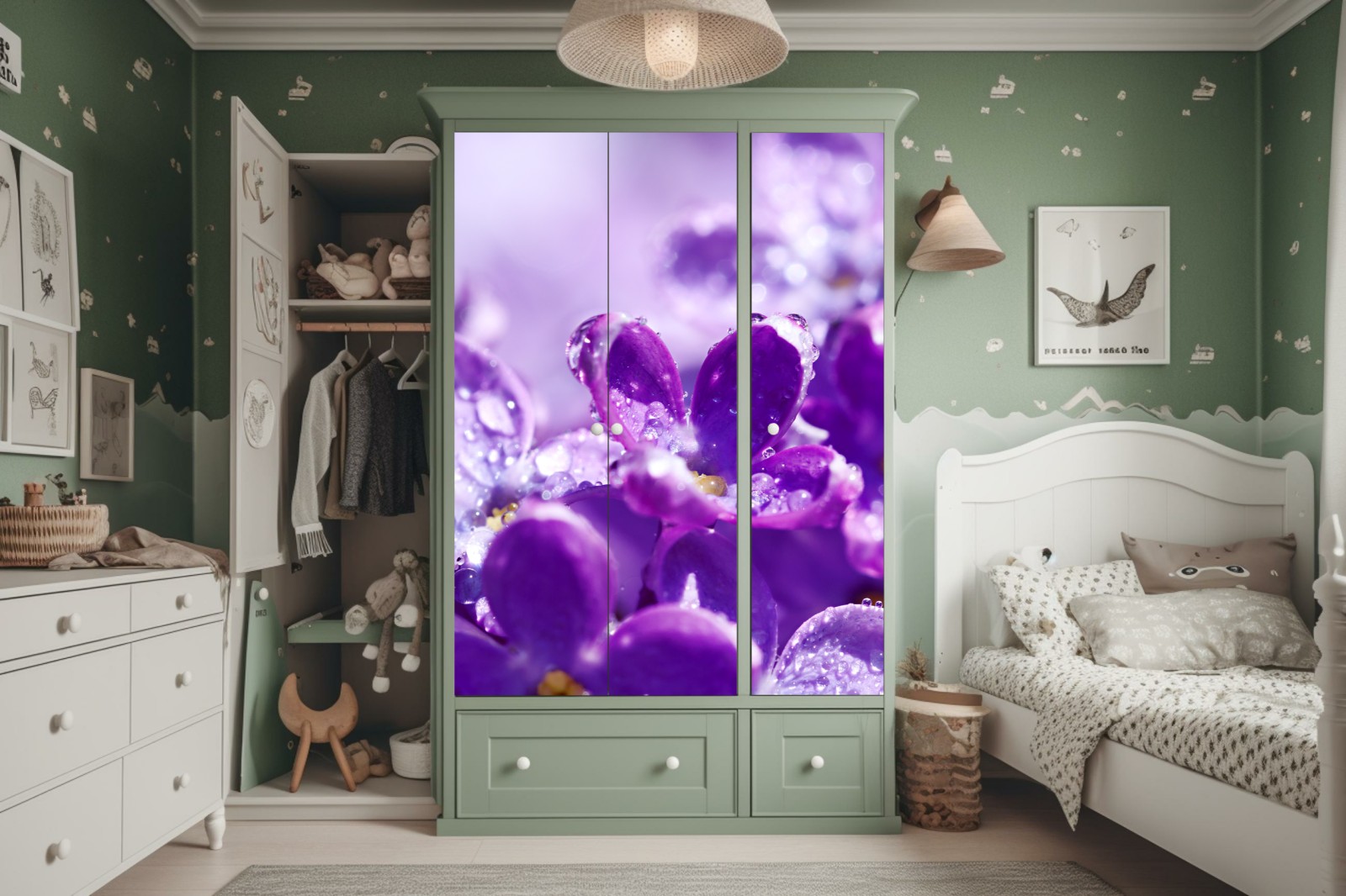 Naklejka na szafę Fioletowy bez z kroplami rosy