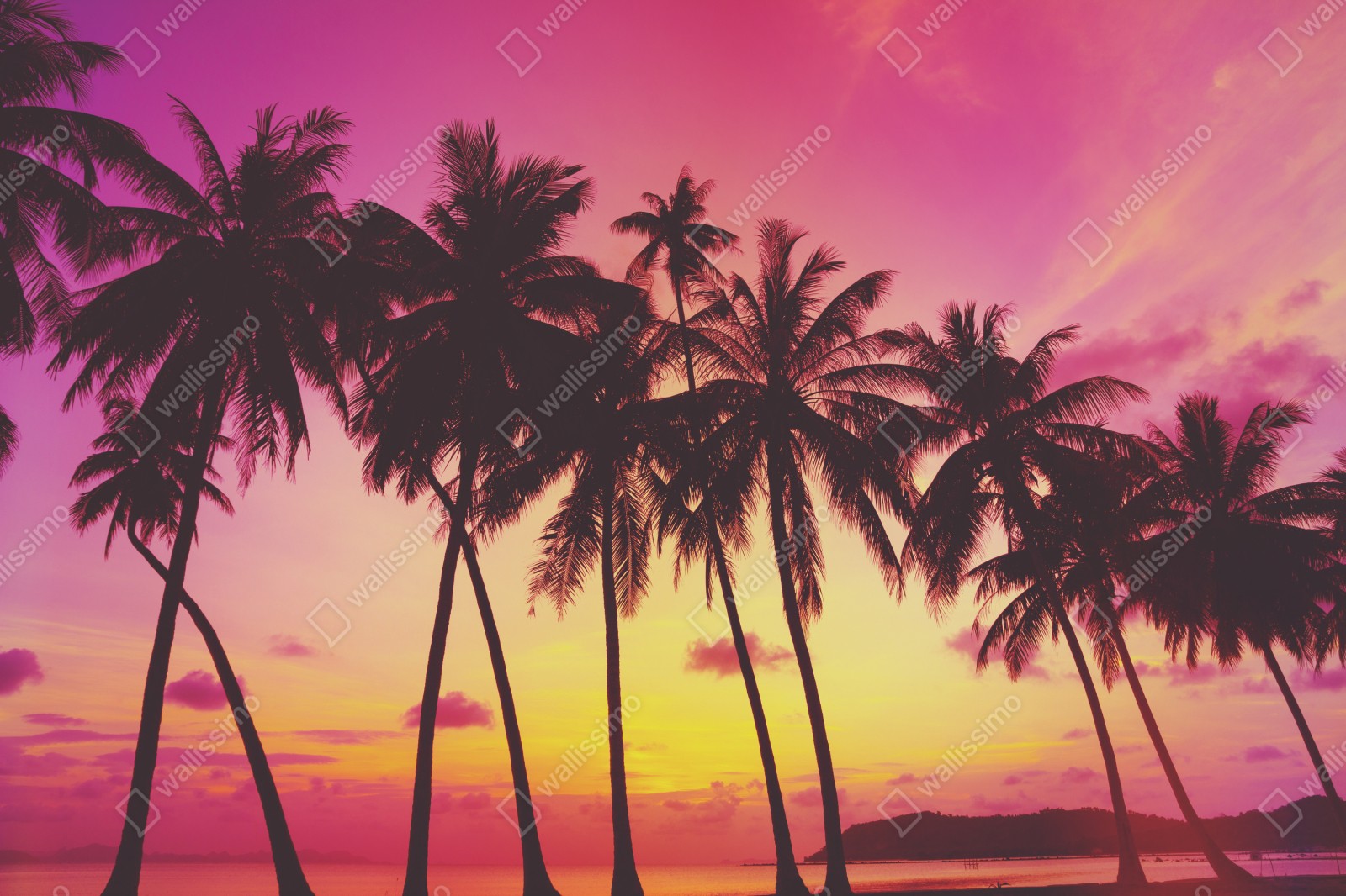 Naklejka na szafę Tropikalny zachód słońca z palmami, Tajlandia