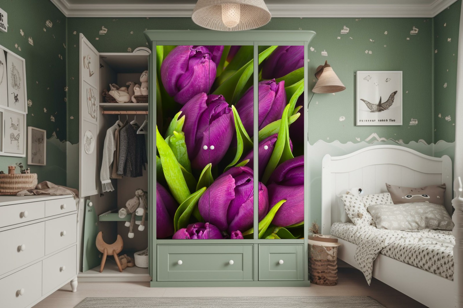 Naklejka na szafę Fioletowy bukiet tulipanów