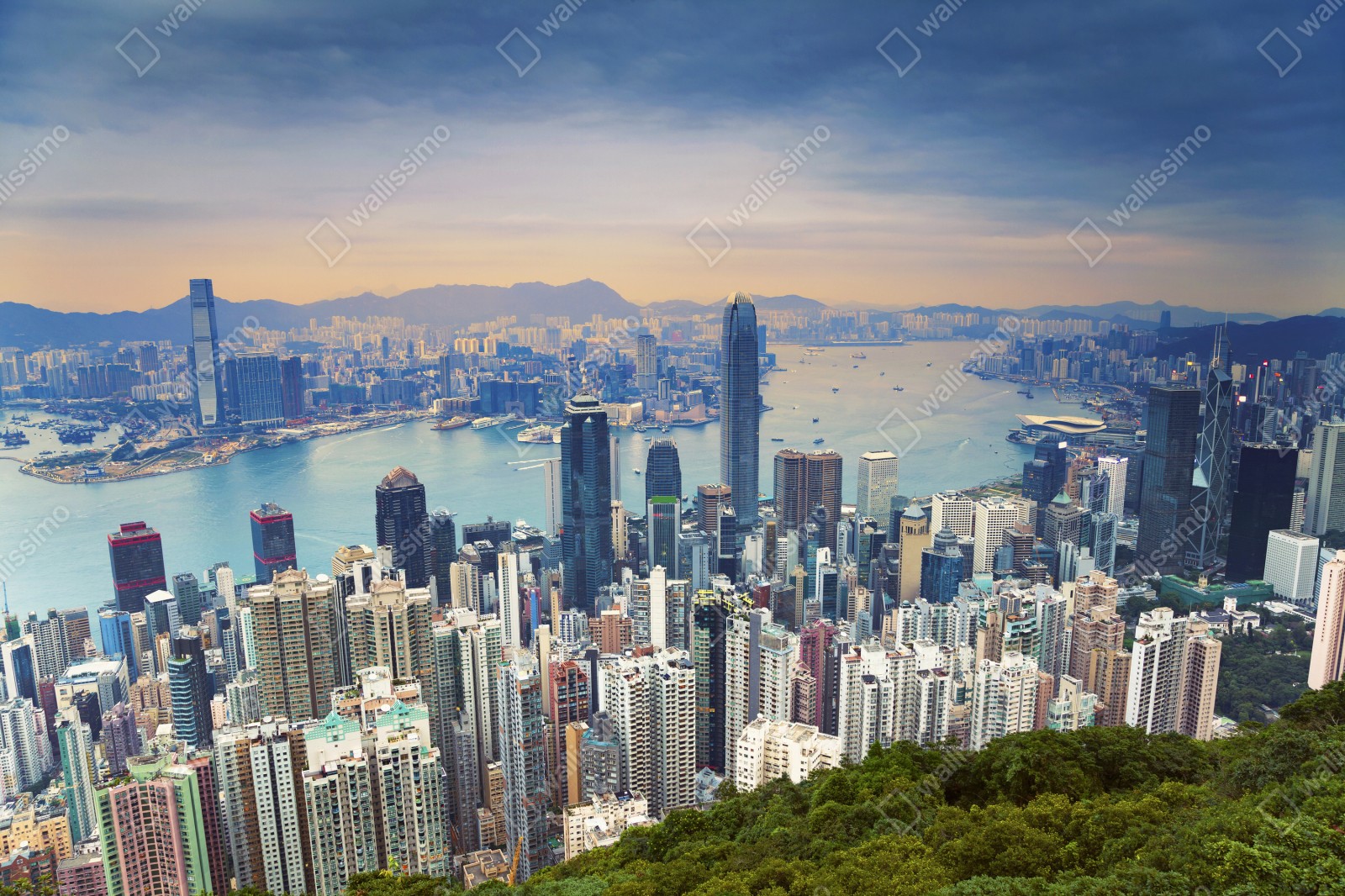 Naklejka na szafę Hong Kong panorama miasta o zmierzchu