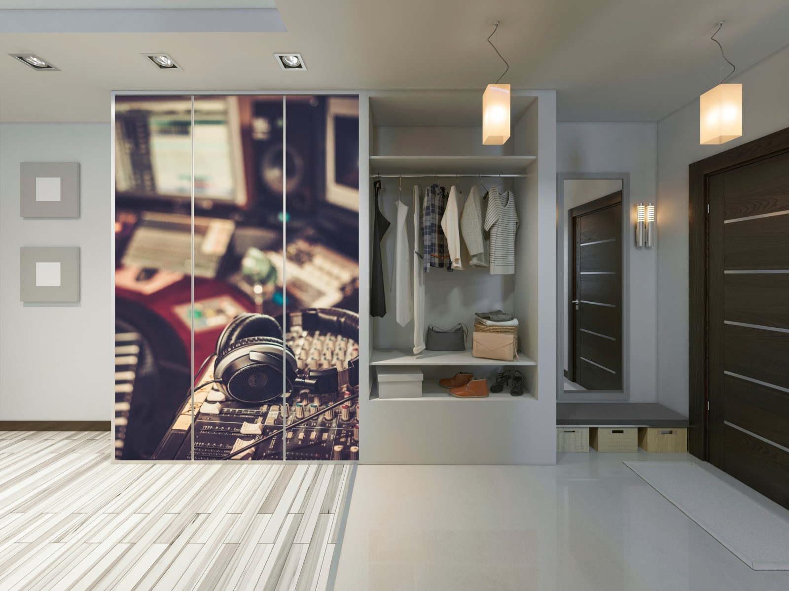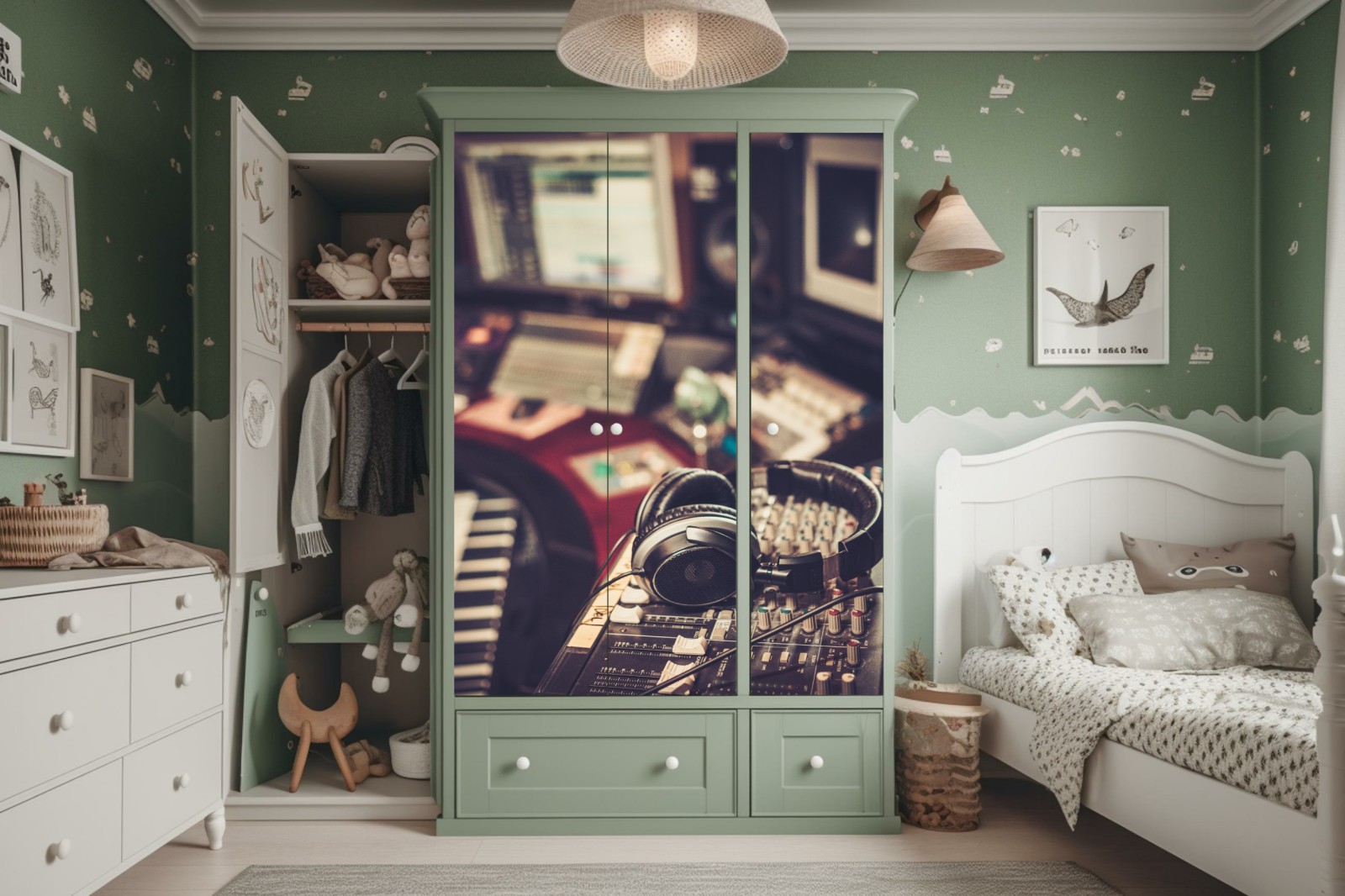 Naklejka na szafę Vintageowe studio nagraniowe przy konsoli mikserskiej