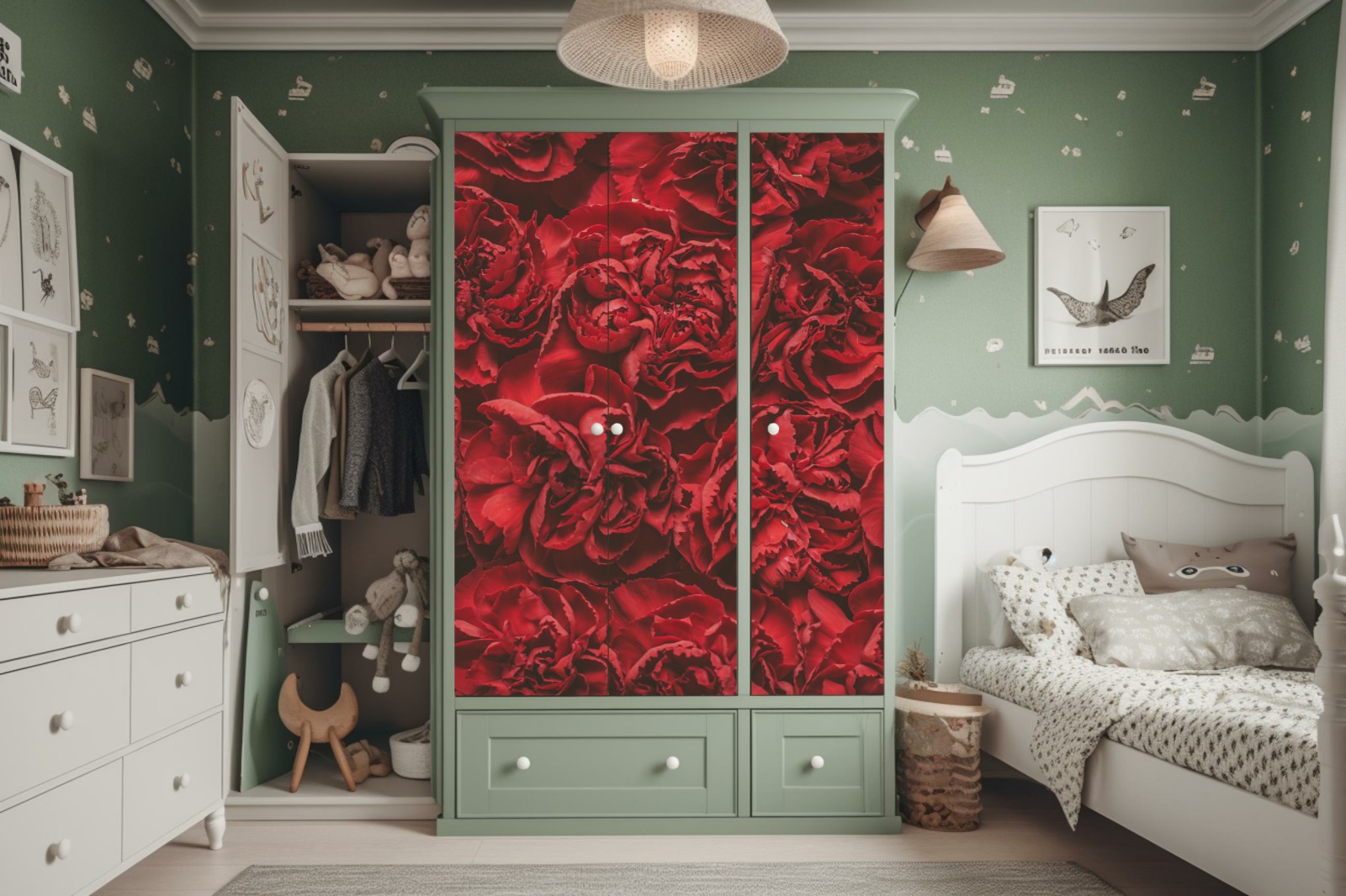 Naklejka na szafę Retro czerwone goździki wzór kwiatowy
