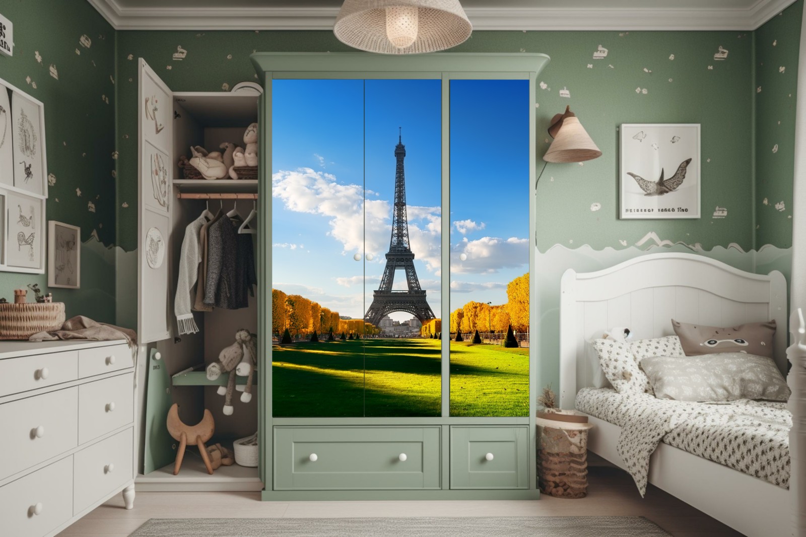 Naklejka na szafę Wiosna na Champs de Mars, Wieża Eiffla, Paryż
