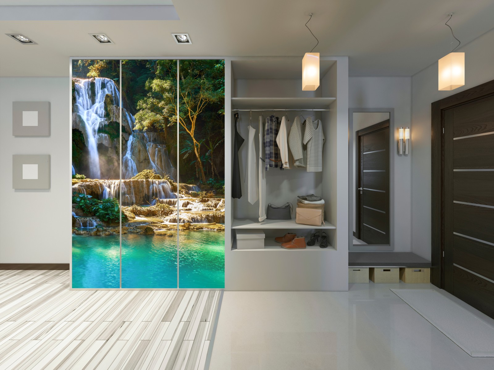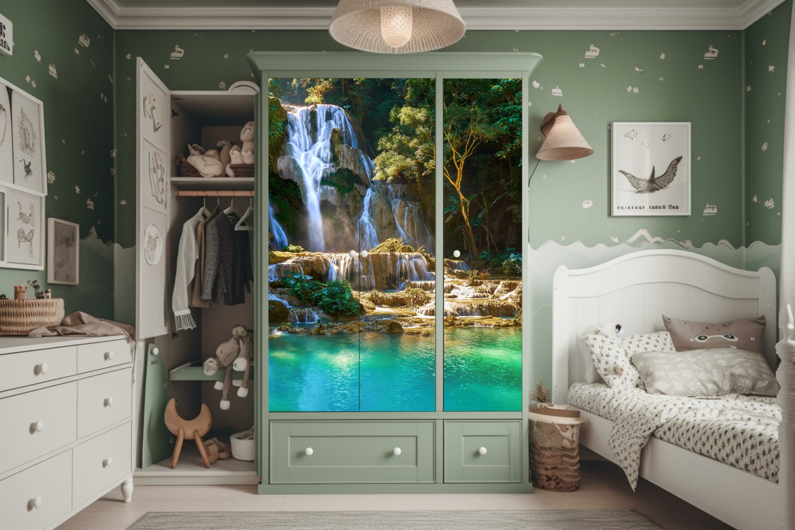 Naklejka na szafę Turkusowy wodospad w bujnym lesie