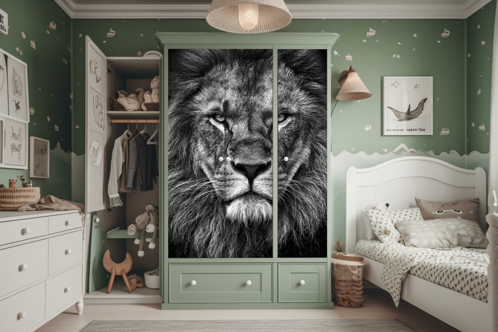 Naklejka na szafę Majestatyczny portret lwa w monochromie