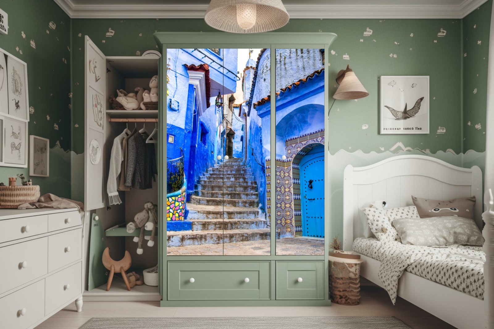Naklejka na szafę Niebieska uliczka w Chefchaouen, Maroko