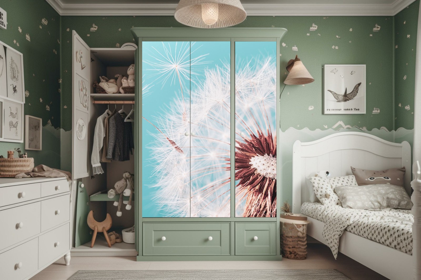 Naklejka na szafę Delikatny dmuchawiec na turkusowym tle