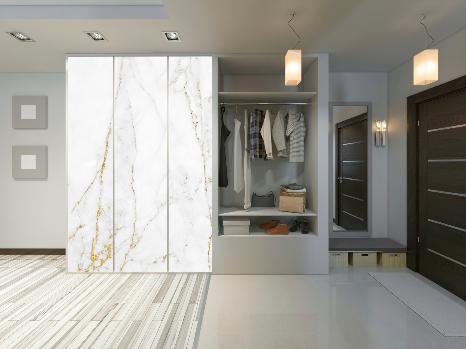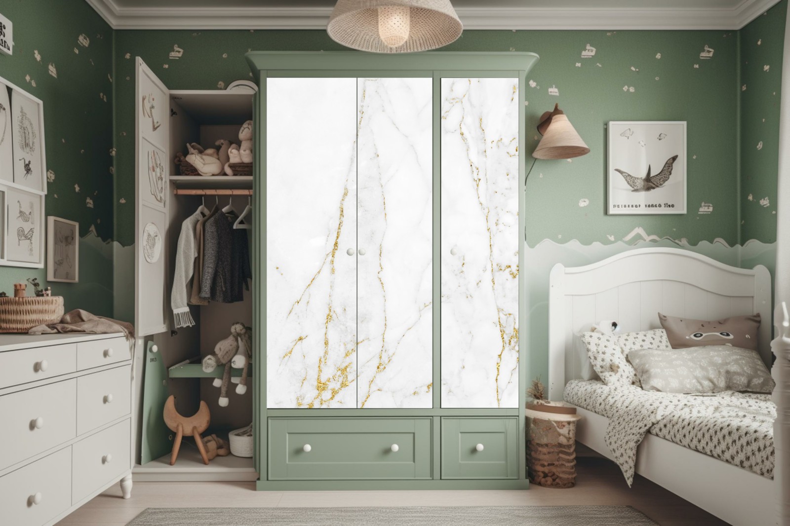 Naklejka na szafę Biały marmur ze złotymi żyłkami