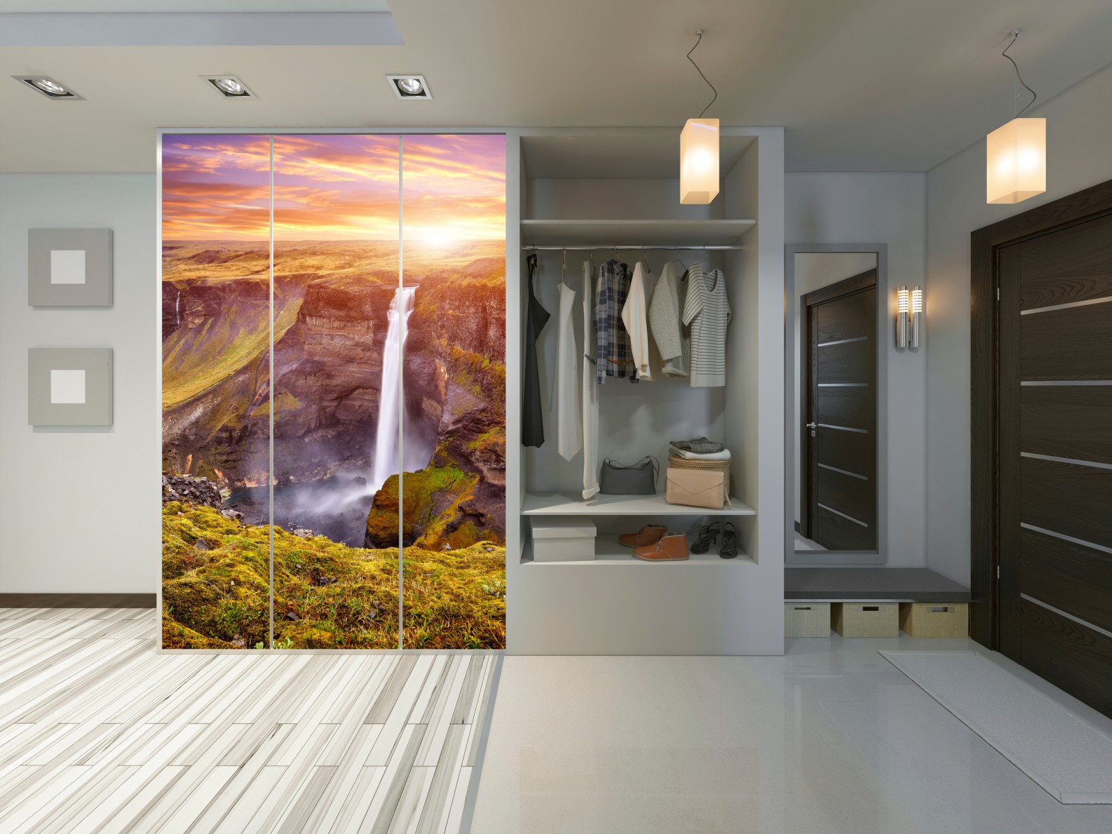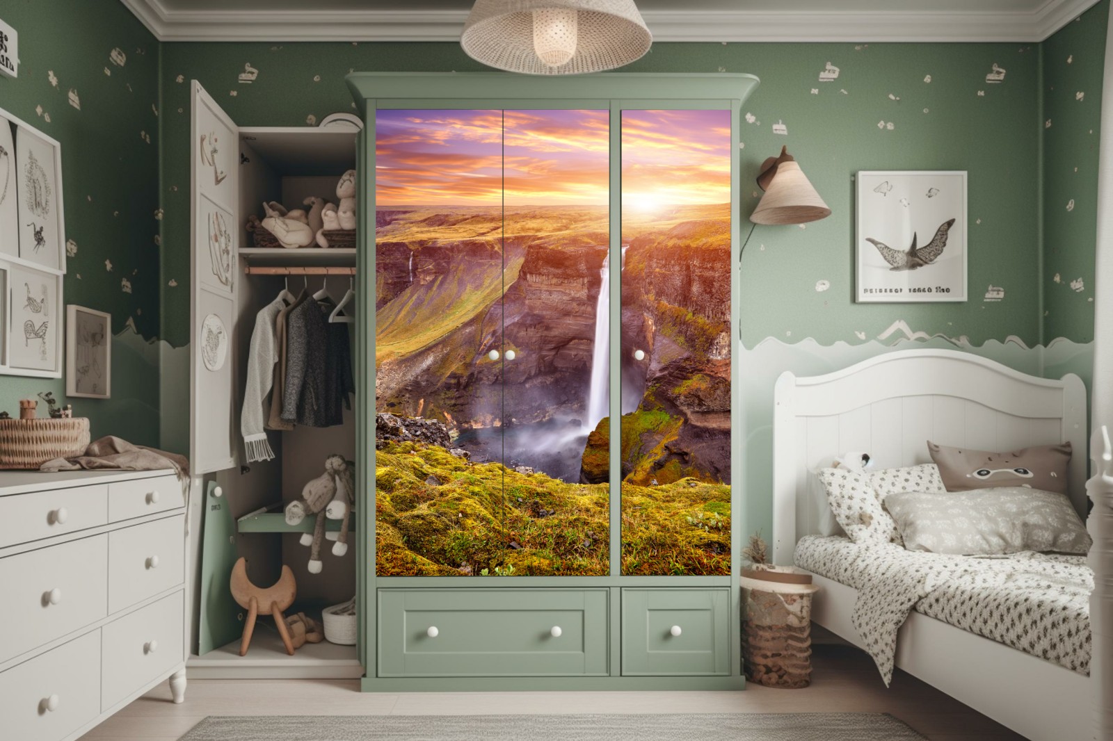 Naklejka na szafę Haifoss wodospad o zachodzie słońca