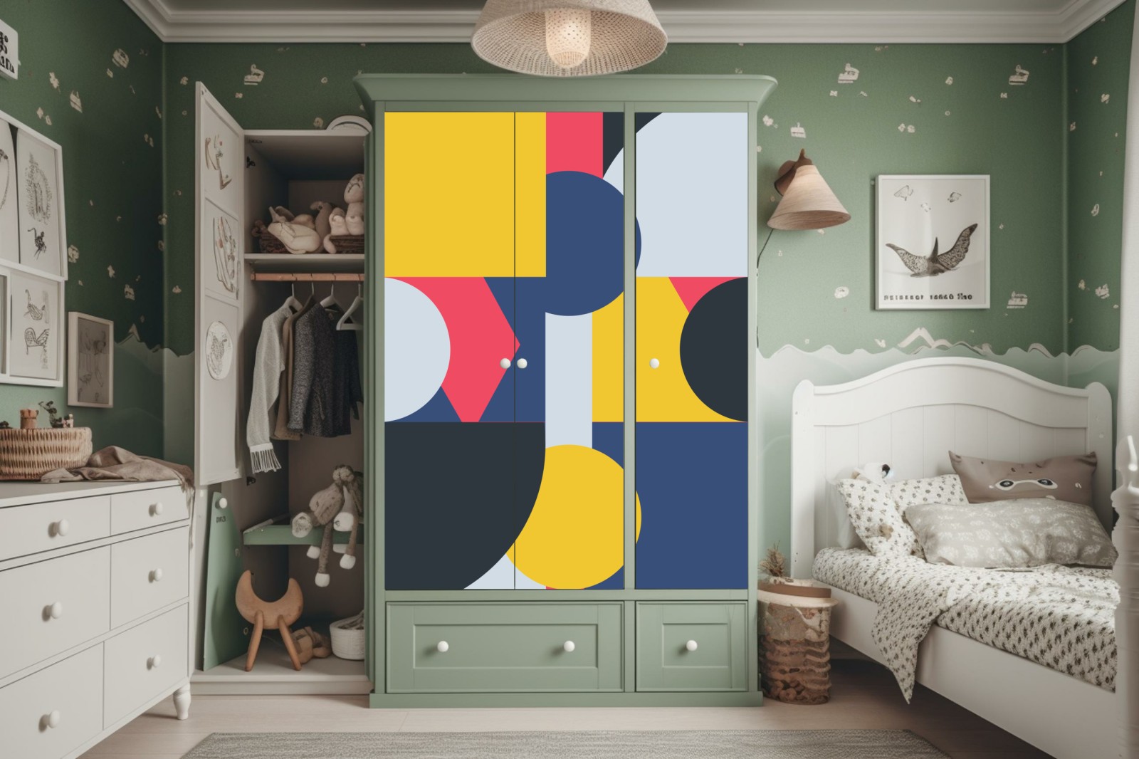 Design i funkcjonalność: Naklejki nie tylko zdobią, ale także chronią powierzchnię szafy, przedłużając jej żywotność.