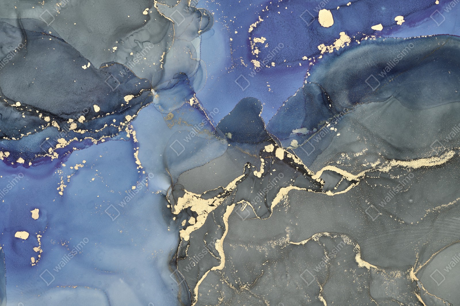 Naklejka na szafę Luksusowa niebiesko-złota abstrakcja fluidalna