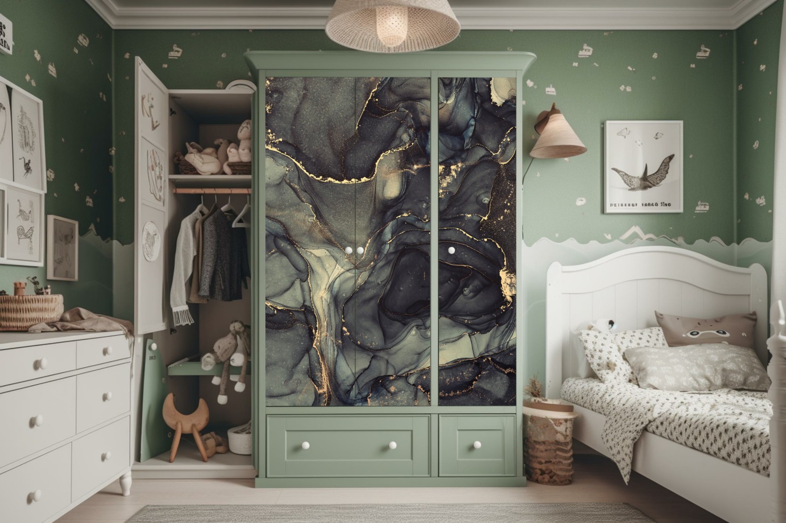 Design i funkcjonalność: Naklejki nie tylko zdobią, ale także chronią powierzchnię szafy, przedłużając jej żywotność.