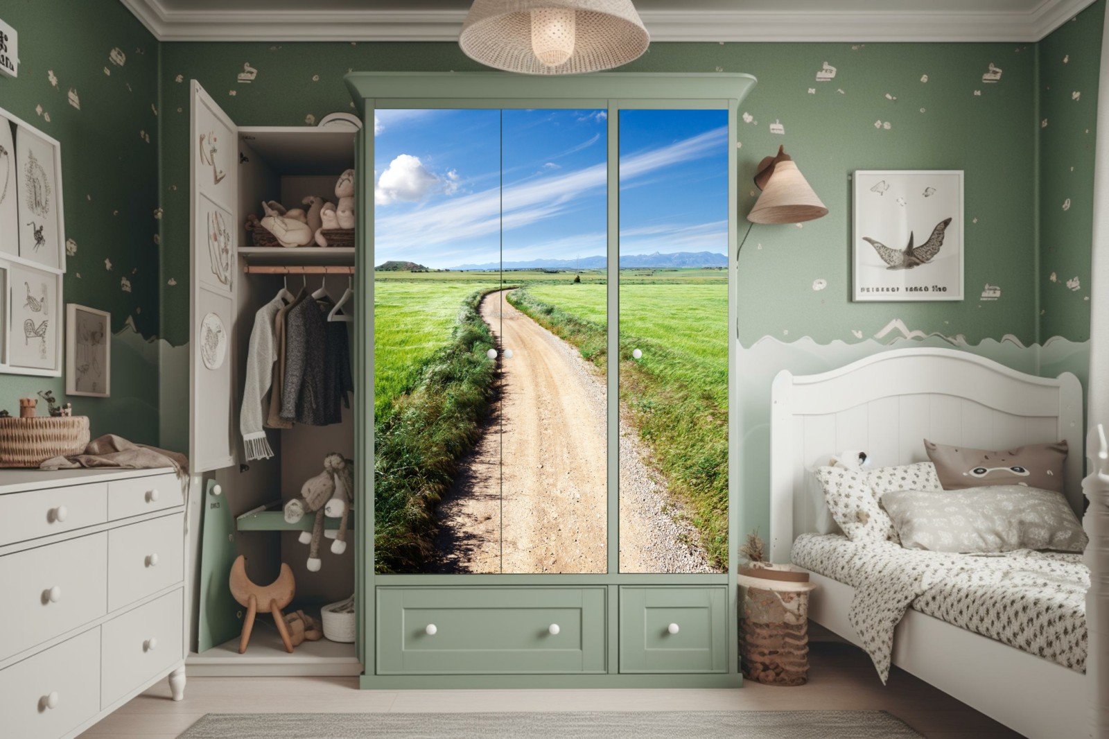 Naklejka na szafę Wijąca się wiejska droga przez zielone łąki