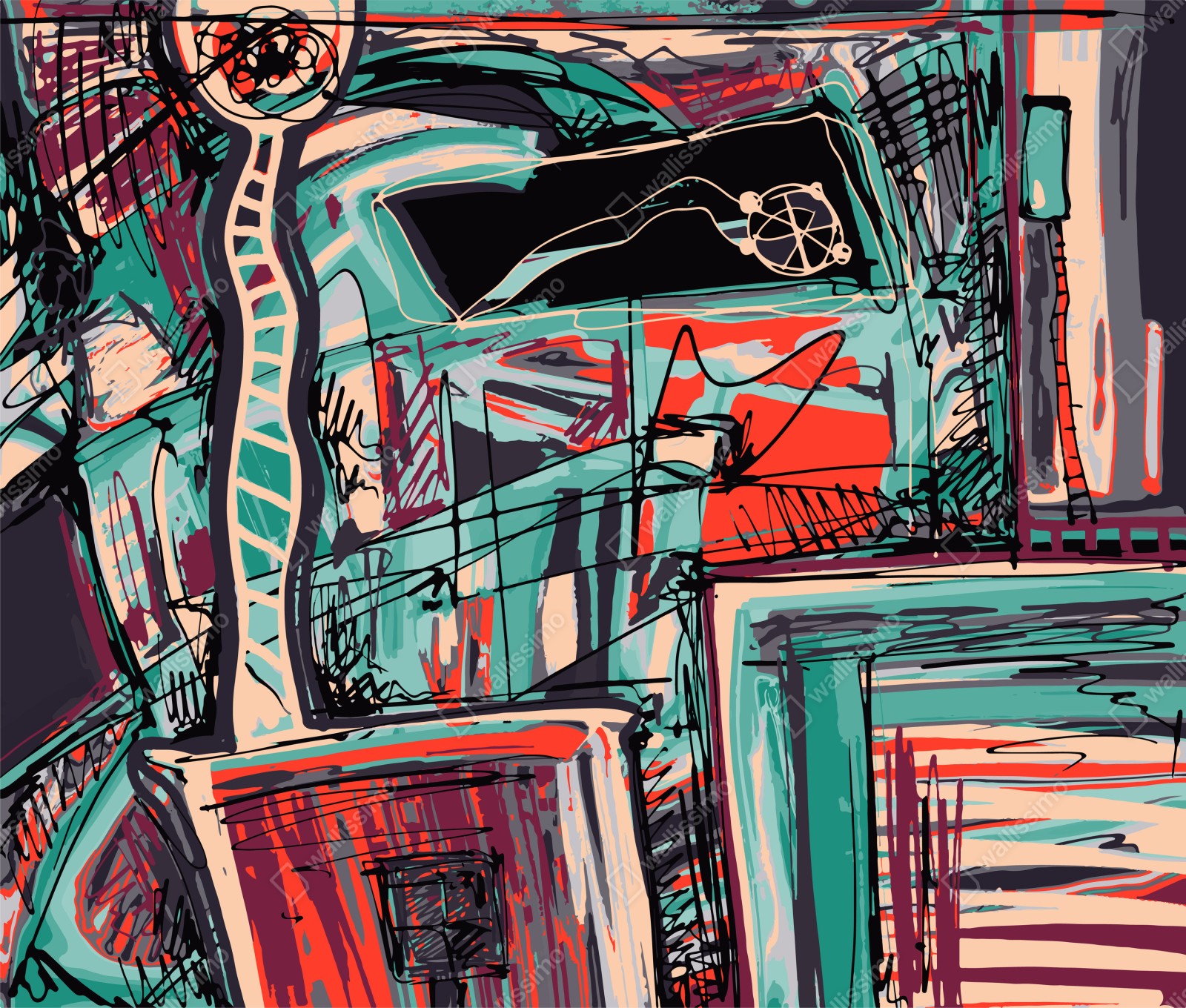 Naklejka na szafę Turkusowo-koralowa abstrakcyjna kompozycja
