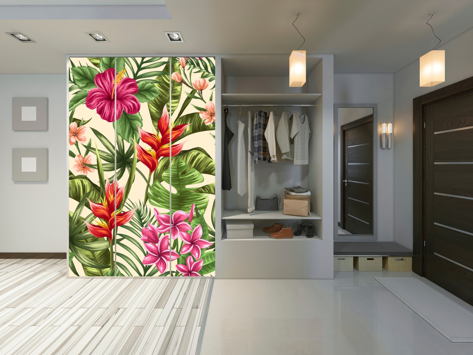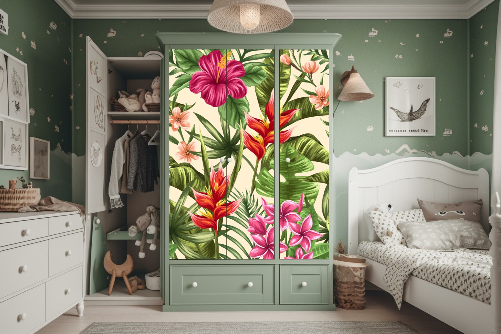 Naklejka na szafę Tropikalny wzór kwiatowy z hibiskusem i plumerią