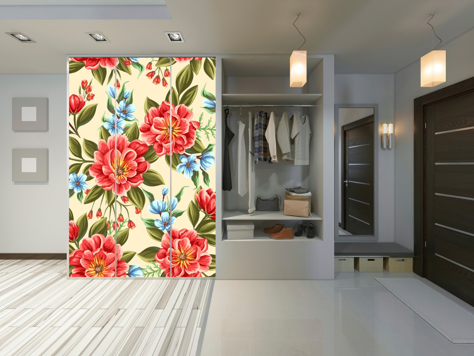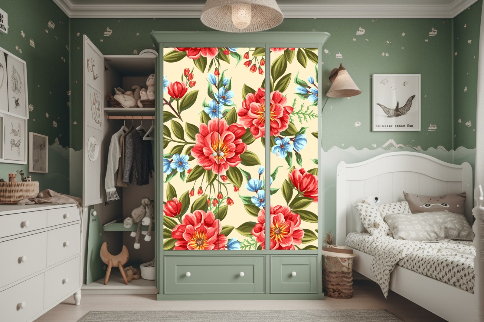 Naklejka na szafę Intensywny akwarelowy wzór kwiatowy