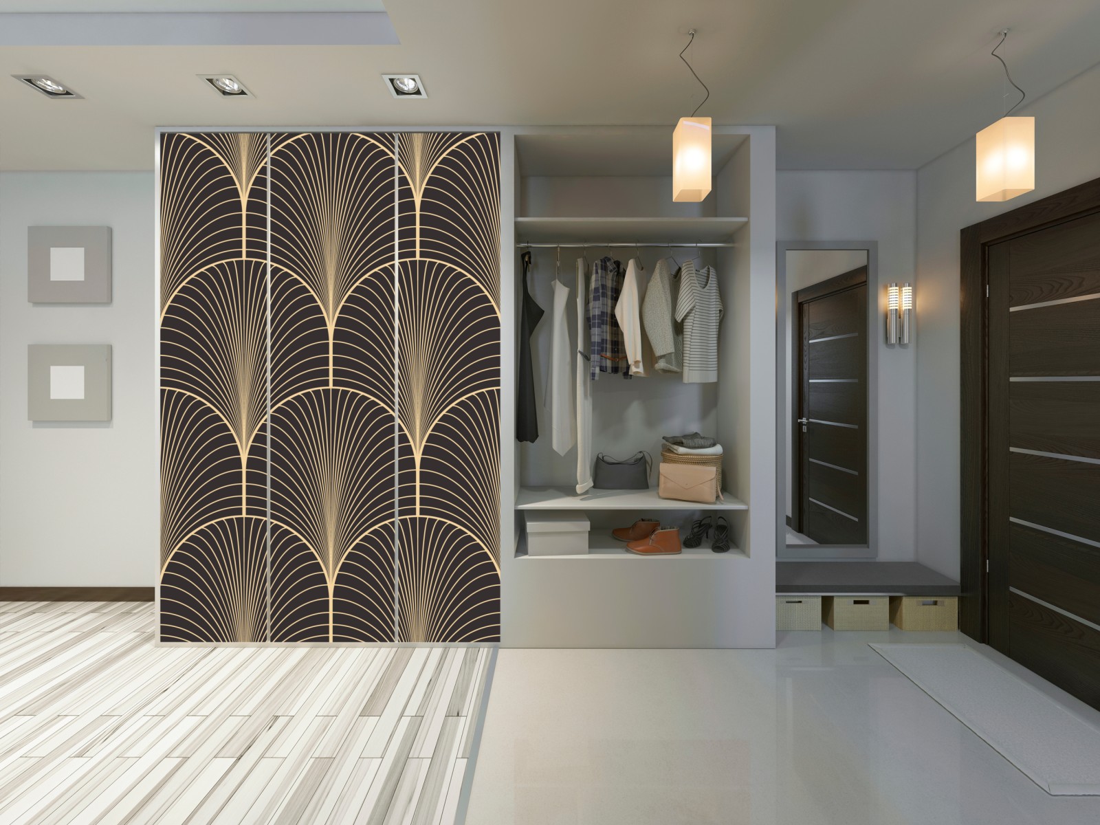 Naklejka na szafę Art deco złoty wzór wachlarza