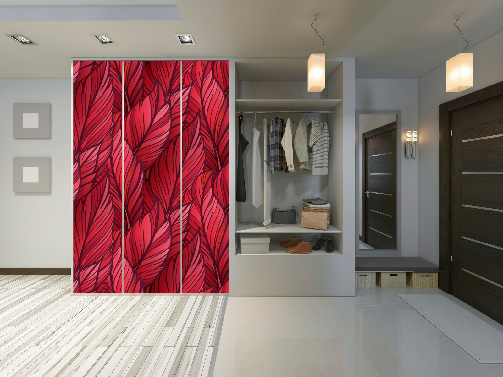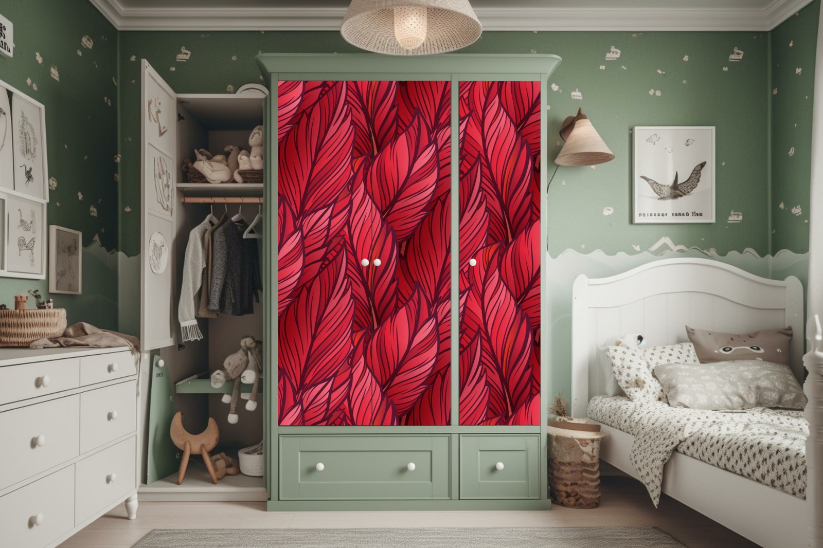 Naklejka na szafę Czerwony botaniczny wzór liści