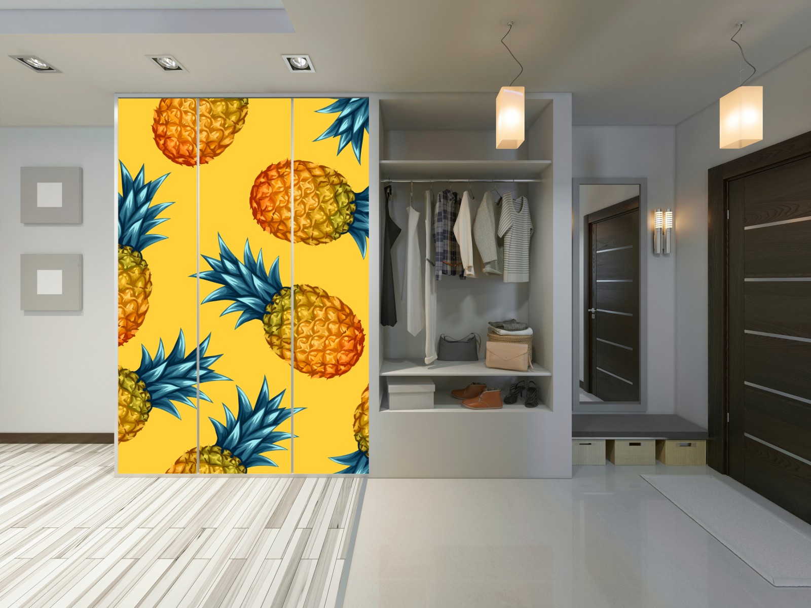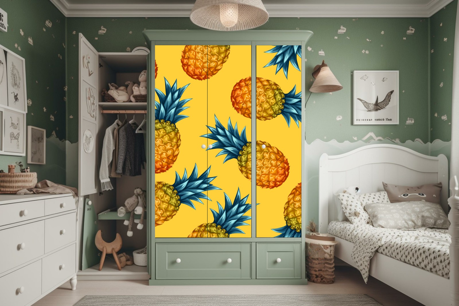 Naklejka na szafę Tropikalny wzór z ananasami na żółtym tle