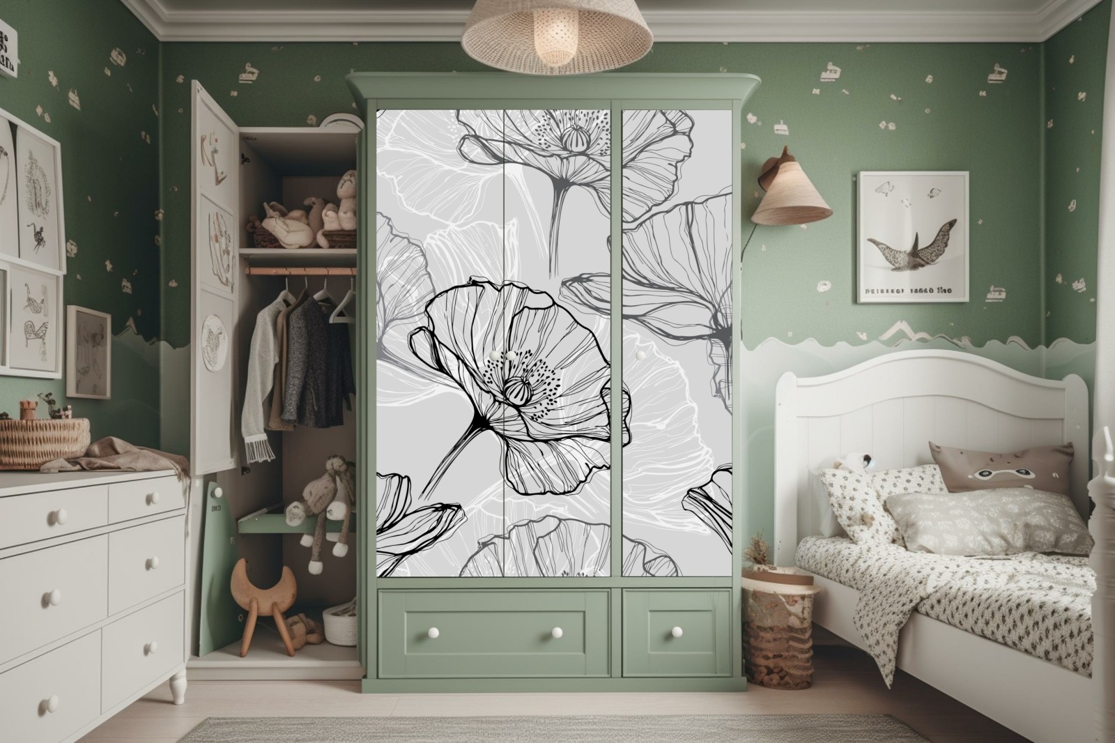 Naklejka na szafę Delikatny szary mak w rysunku liniowym