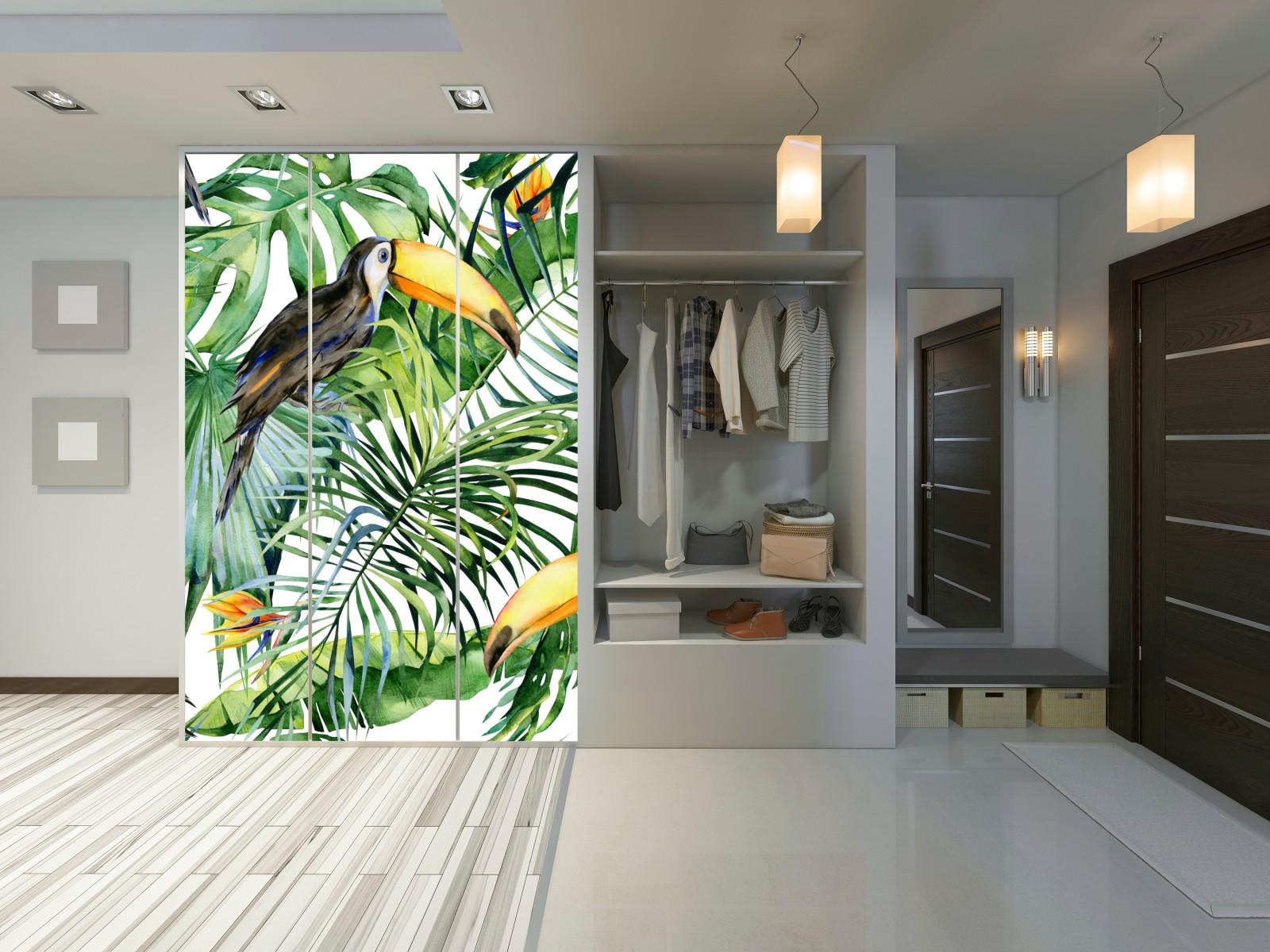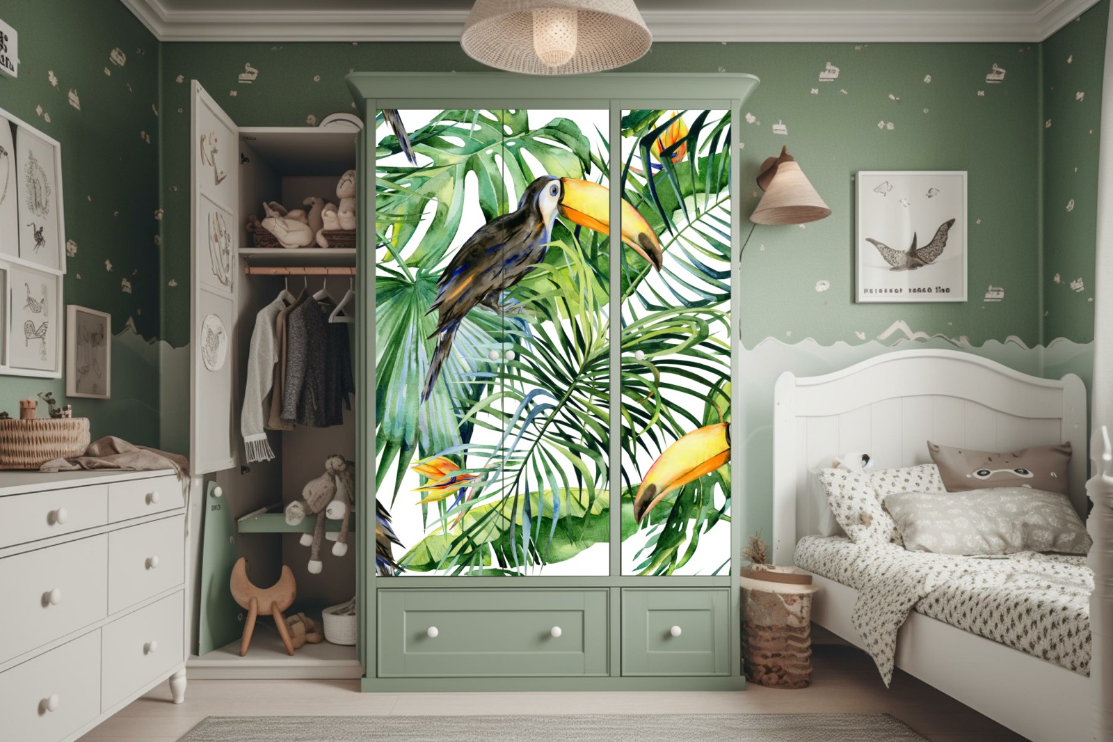 Naklejka na szafę Akwarelowy tukan w tropikalnym wzorze