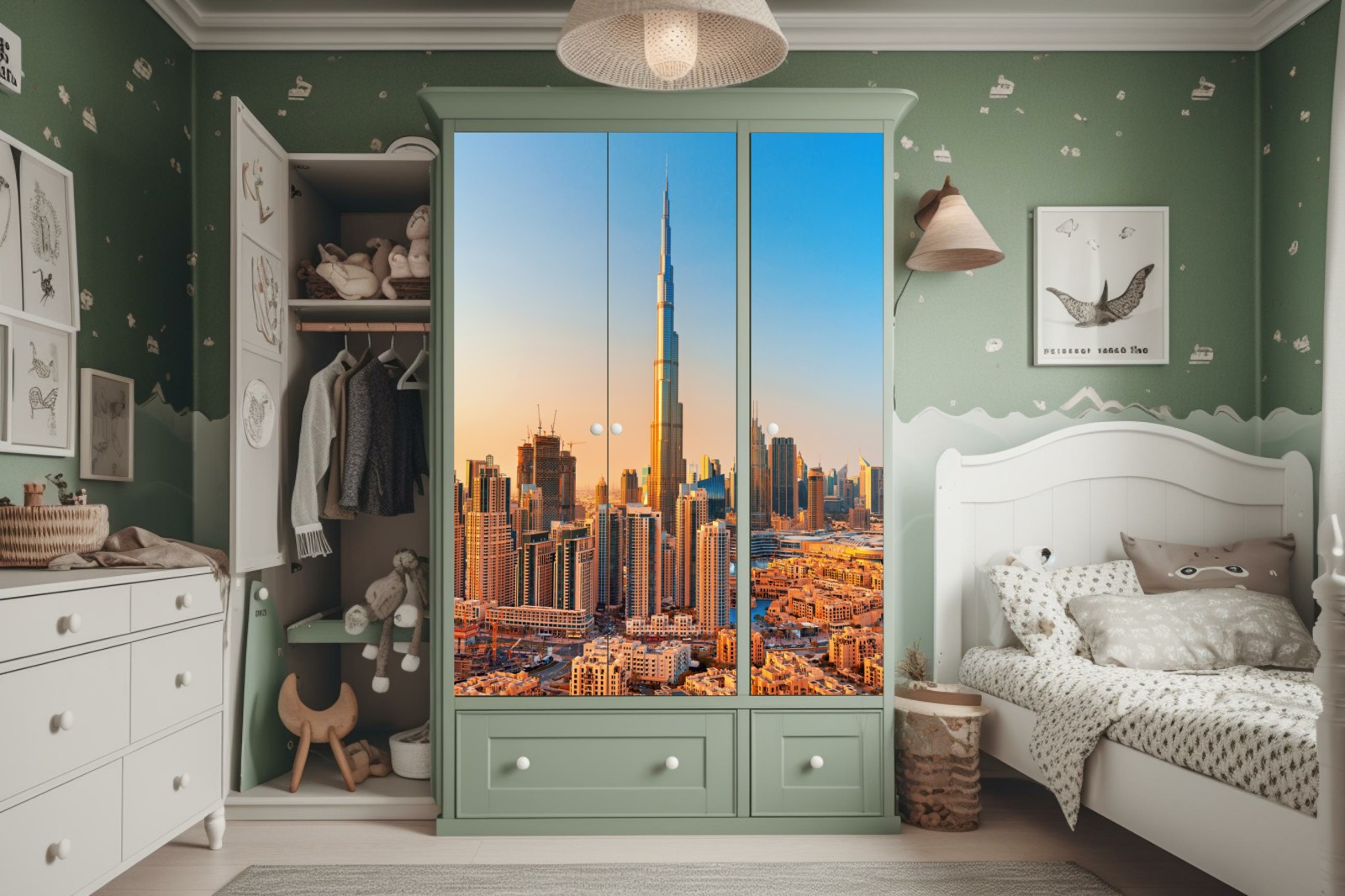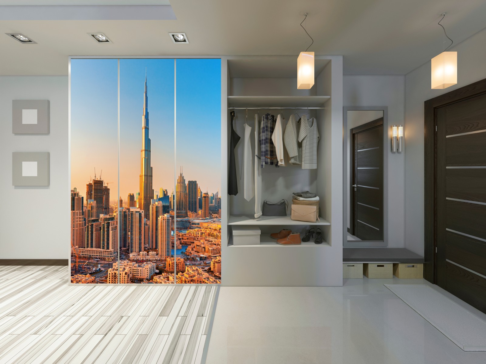 Naklejka na szafę Panorama Dubaju o złotej godzinie
