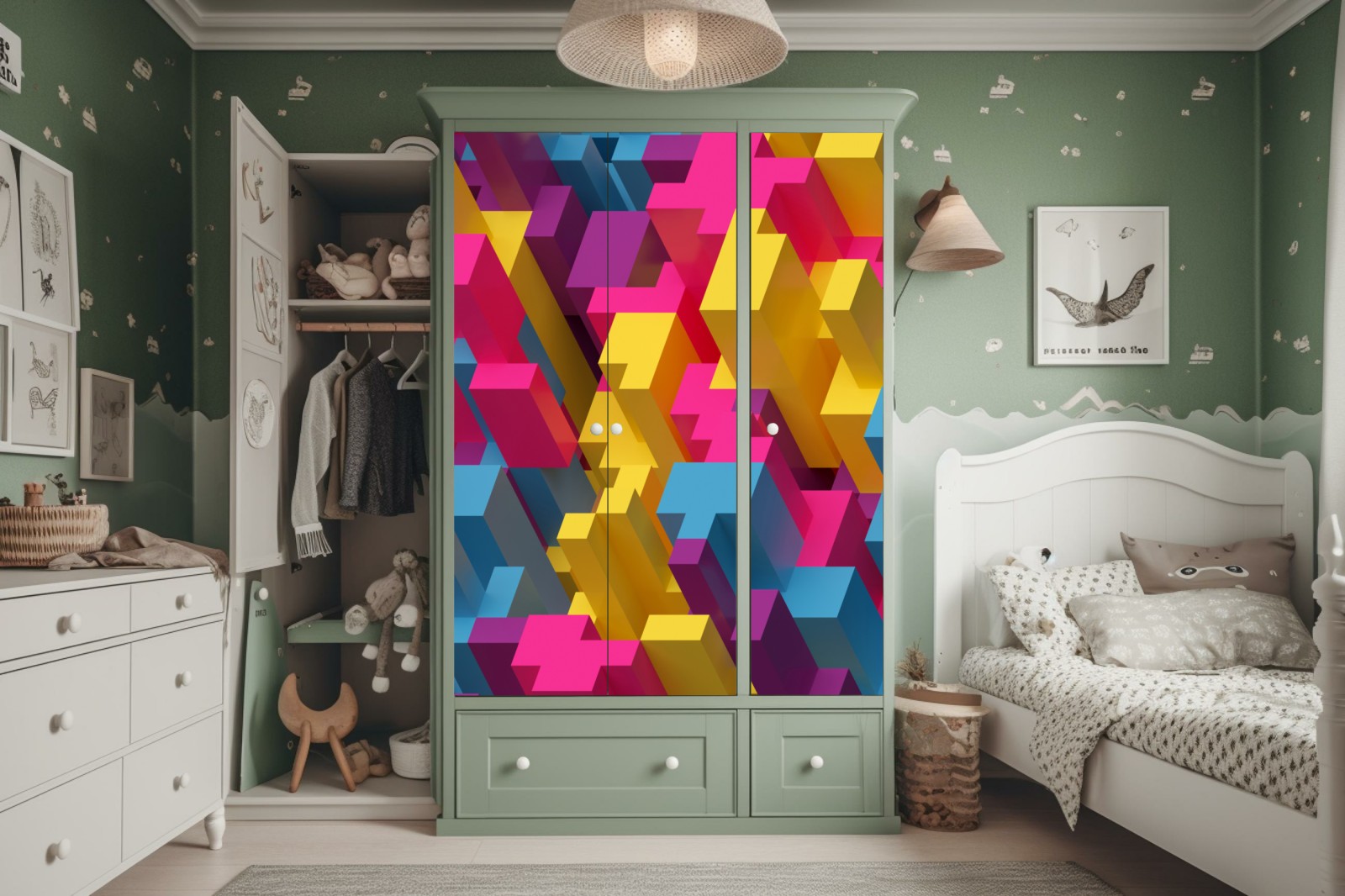 Naklejka na szafę Kolorowy wzór voxel 3d