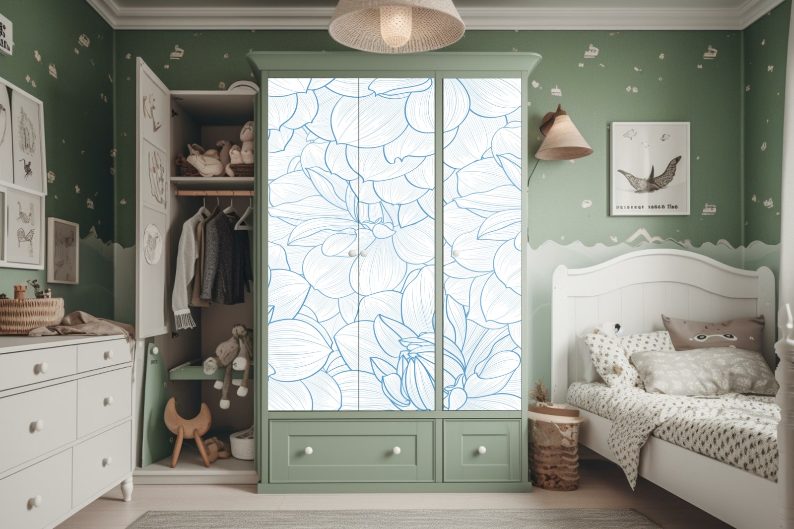 Naklejka na szafę Delikatny niebieski motyw kwiatowy