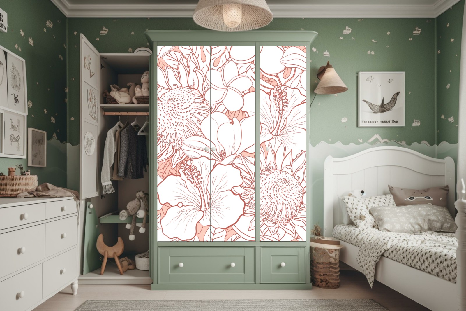 Design i funkcjonalność: Naklejki nie tylko zdobią, ale także chronią powierzchnię szafy, przedłużając jej żywotność.