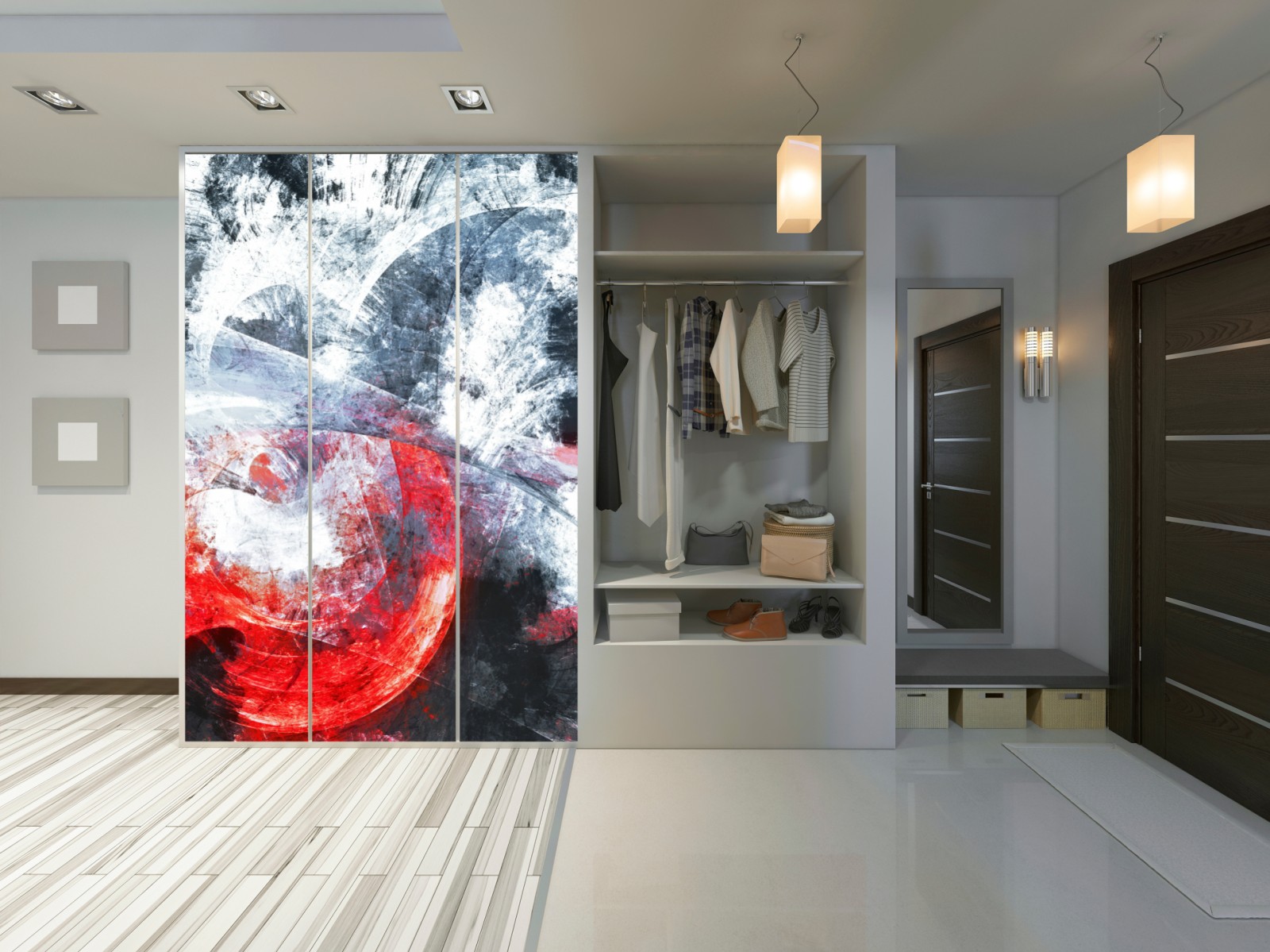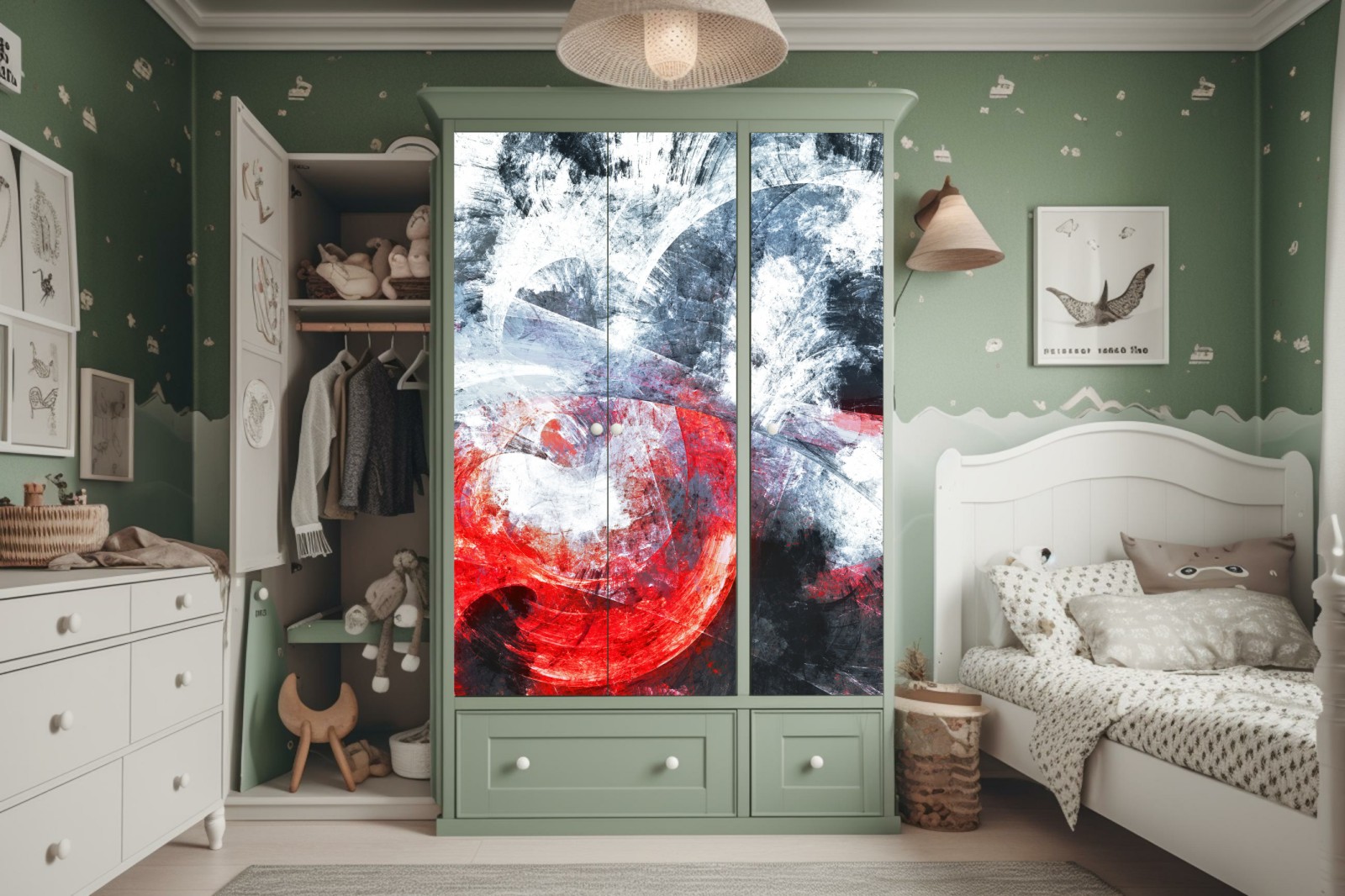 Naklejka na szafę Dynamiczna czerwona i biała abstrakcyjna kompozycja