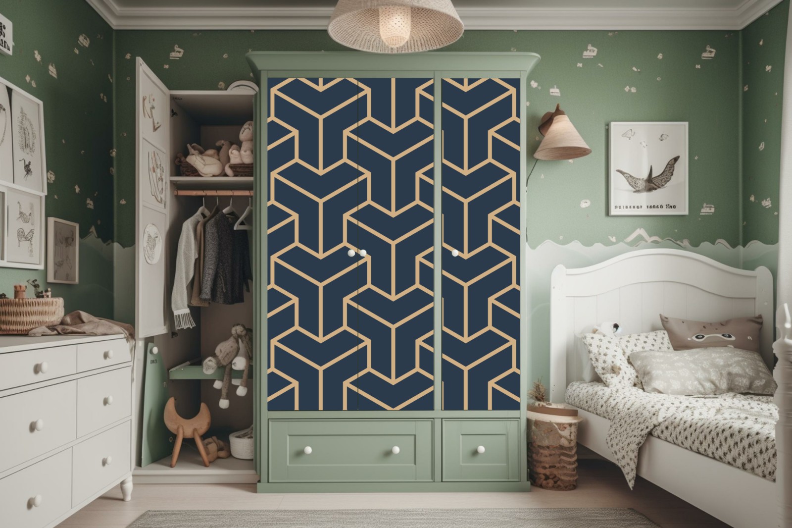 Naklejka na szafę Granatowy geometryczny wzór sześcianów