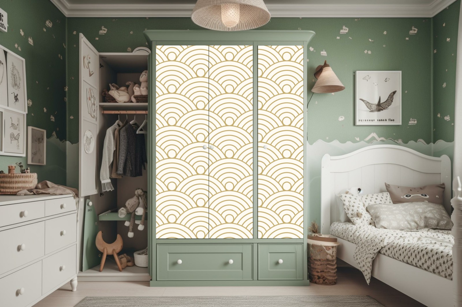 Naklejka na szafę Złoty wzór seigaiha