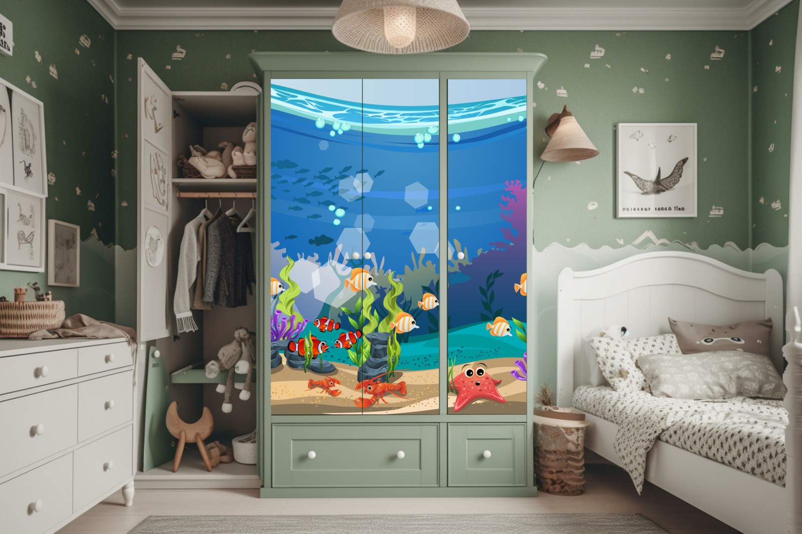 Naklejka na szafę Zabawna podwodna scena z rafą koralową
