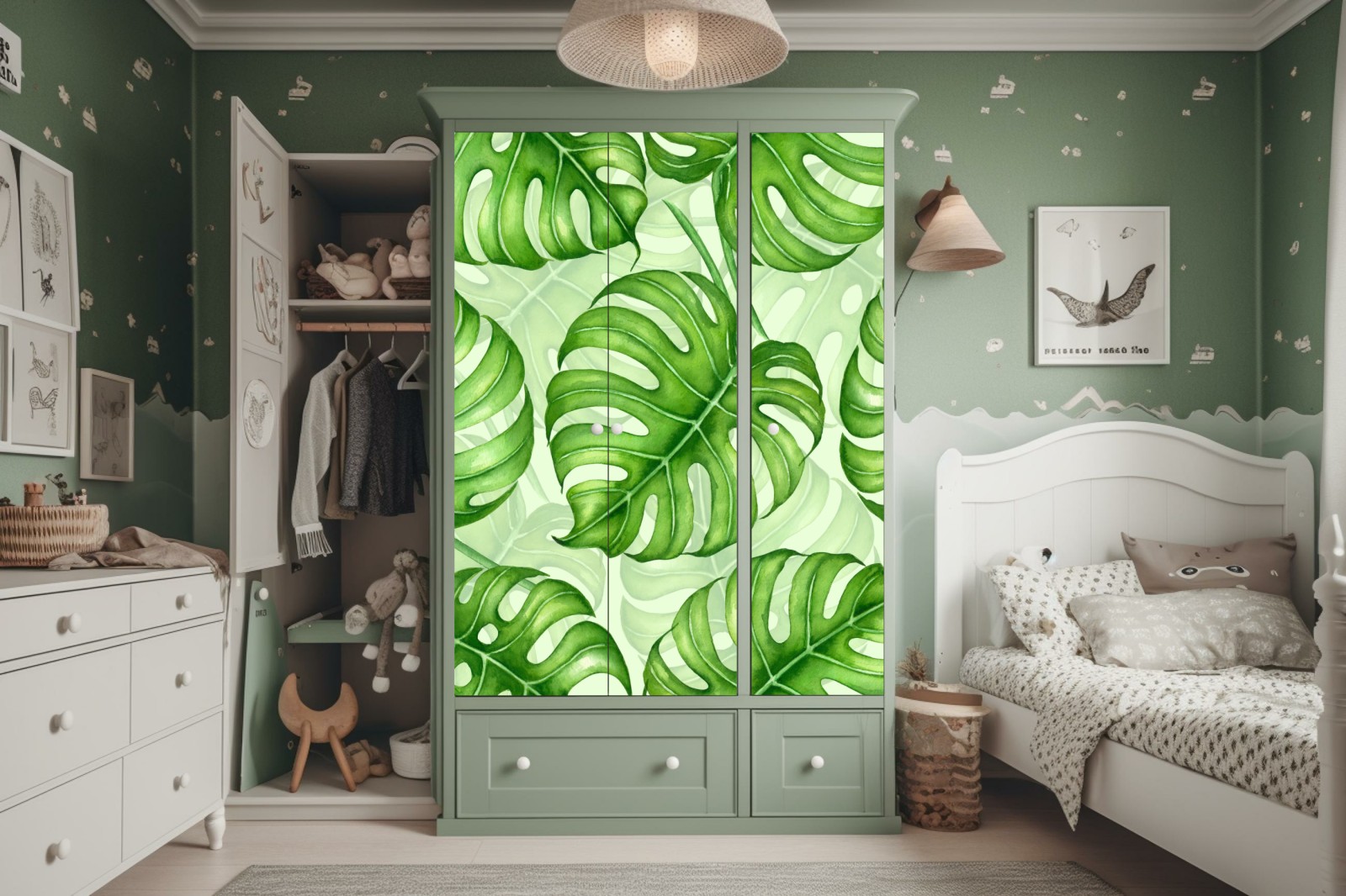 Naklejka na szafę Akwarelowy wzór liści monstery
