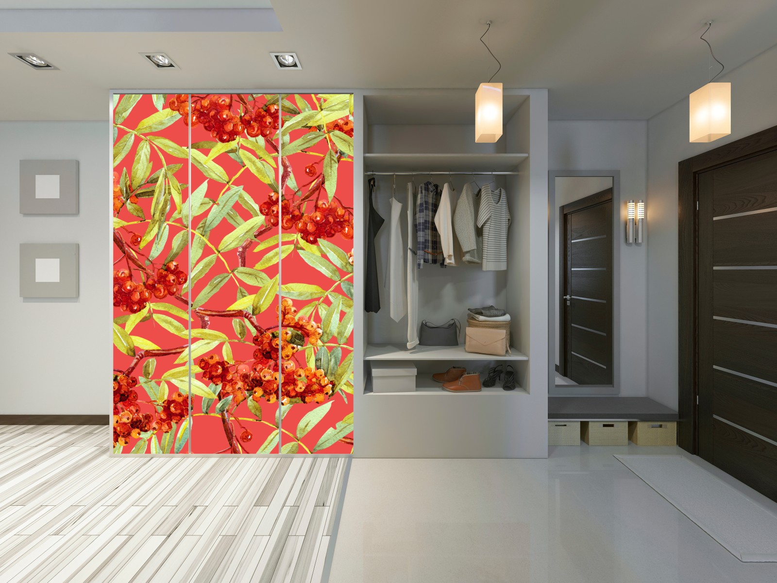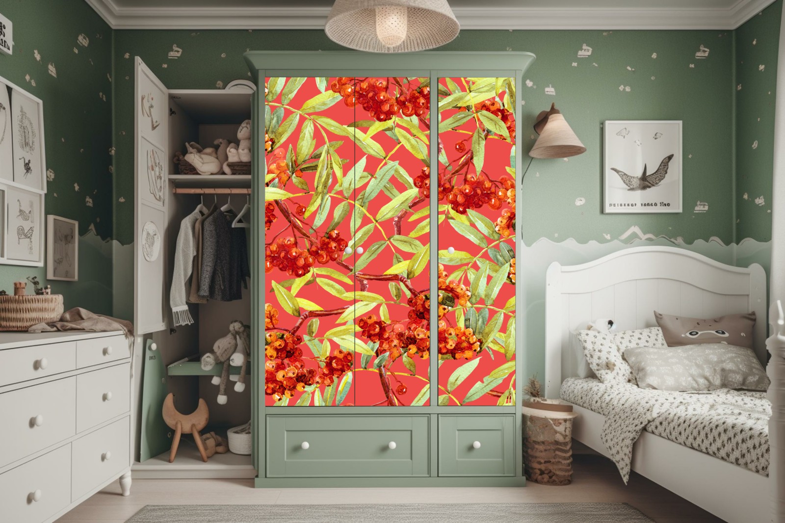 Naklejka na szafę Akwarelowy wzór jarzębiny