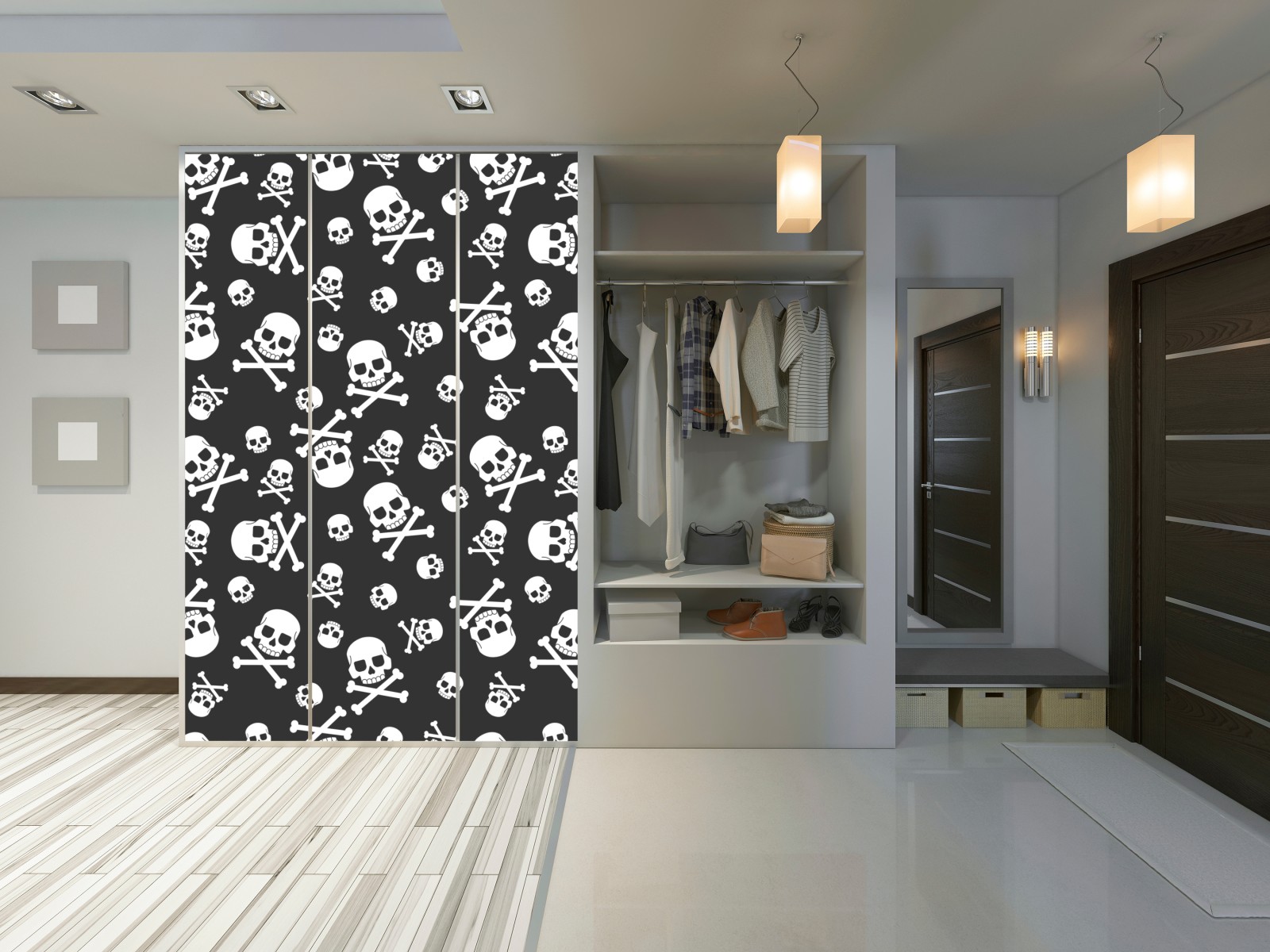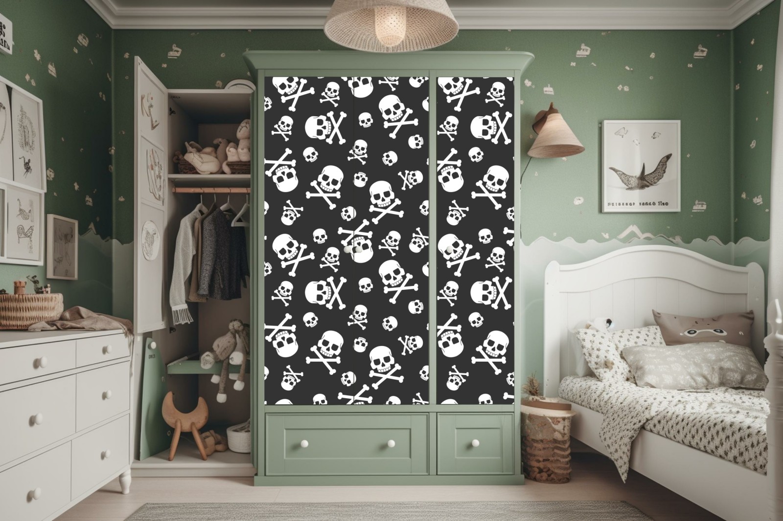 Naklejka na szafę Biały wzór czaszek na szarym tle