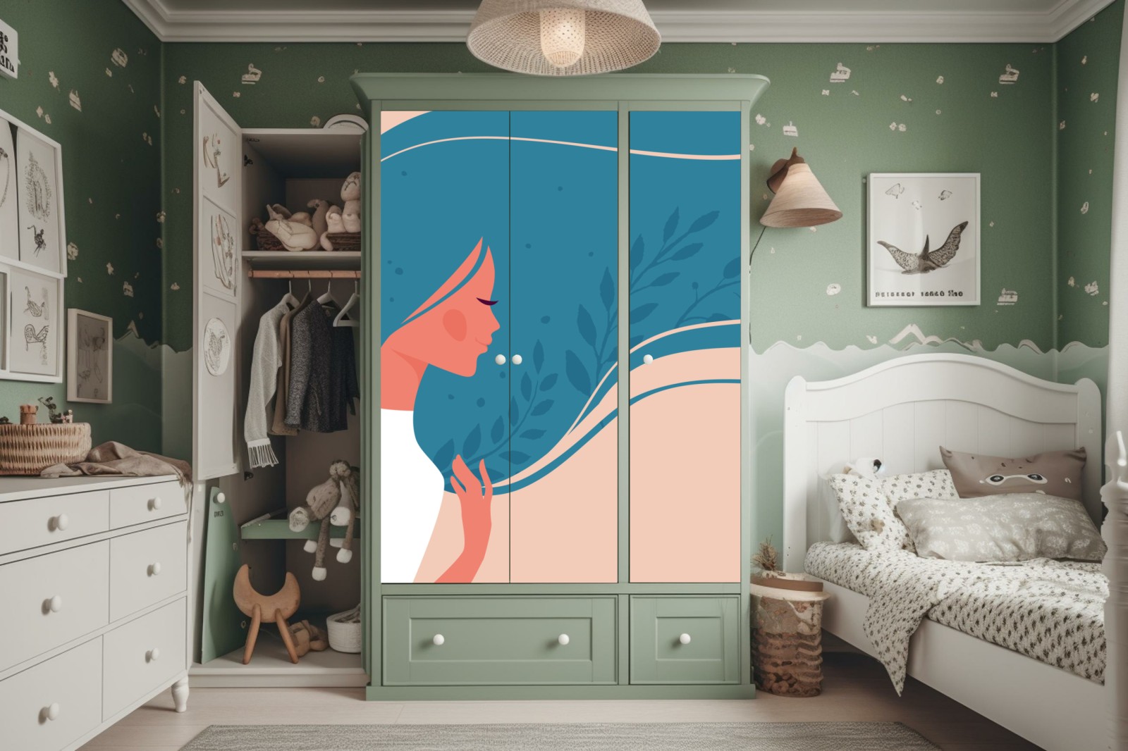 Naklejka na szafę Spokojny kwiatowy profil z falującymi włosami