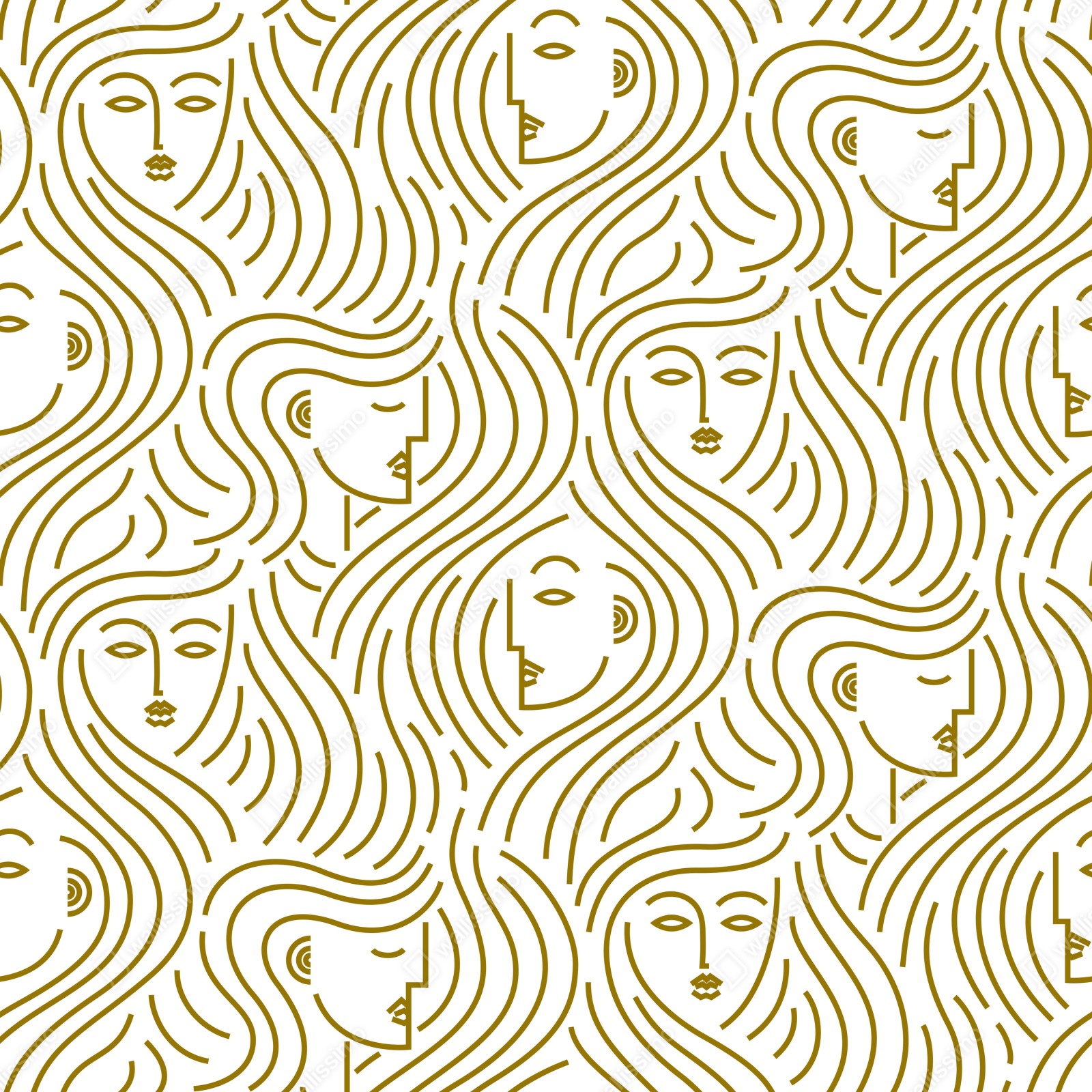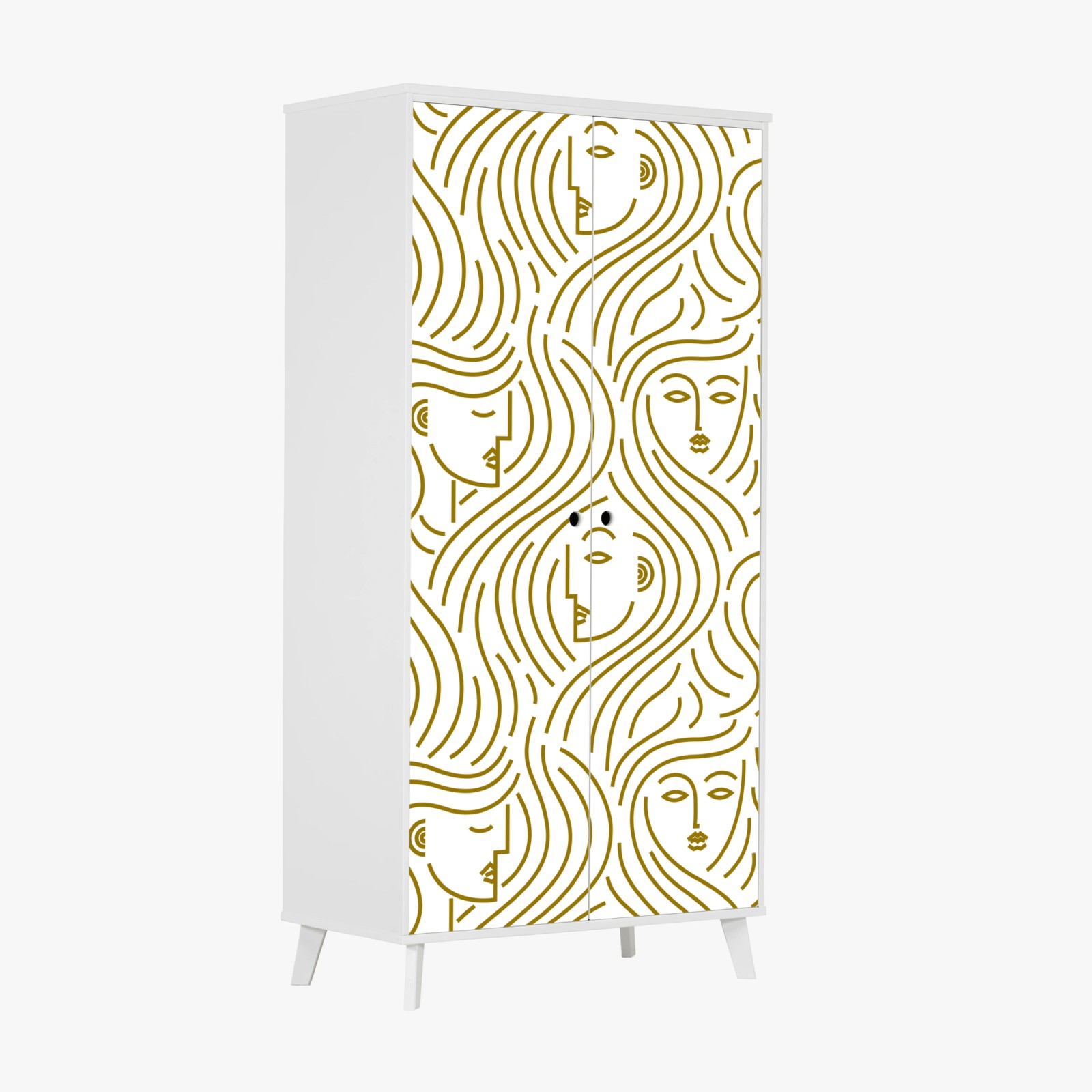 Naklejka na szafę Złote fale i abstrakcyjne twarze bezszwowy wzór