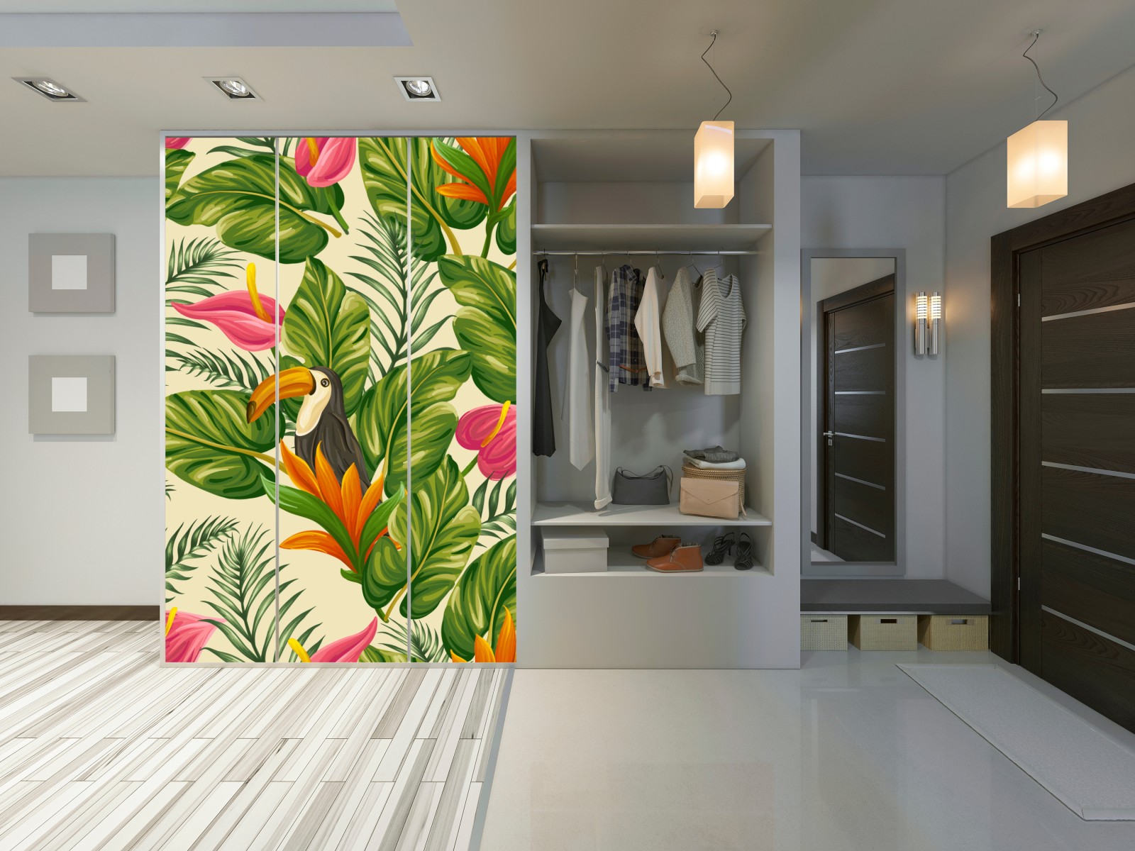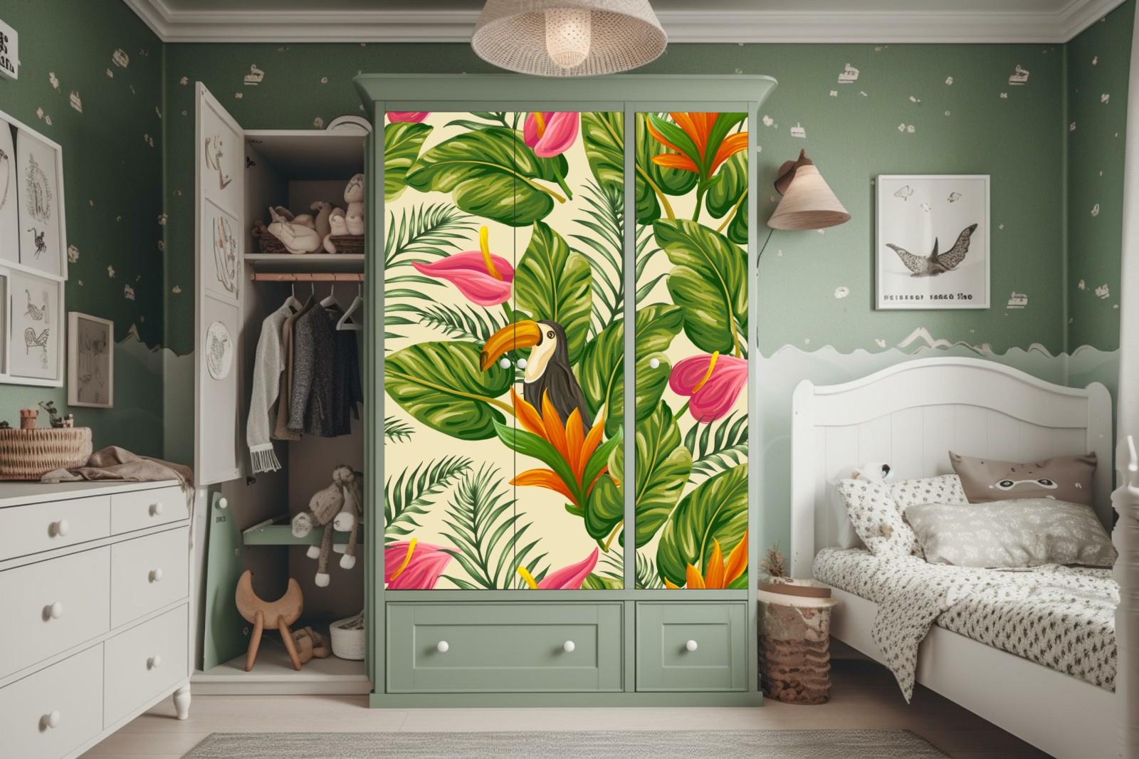 Naklejka na szafę Tropikalny wzór botaniczny z tukanem