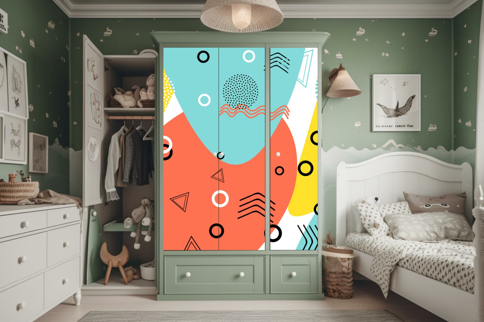 Design i funkcjonalność: Naklejki nie tylko zdobią, ale także chronią powierzchnię szafy, przedłużając jej żywotność.