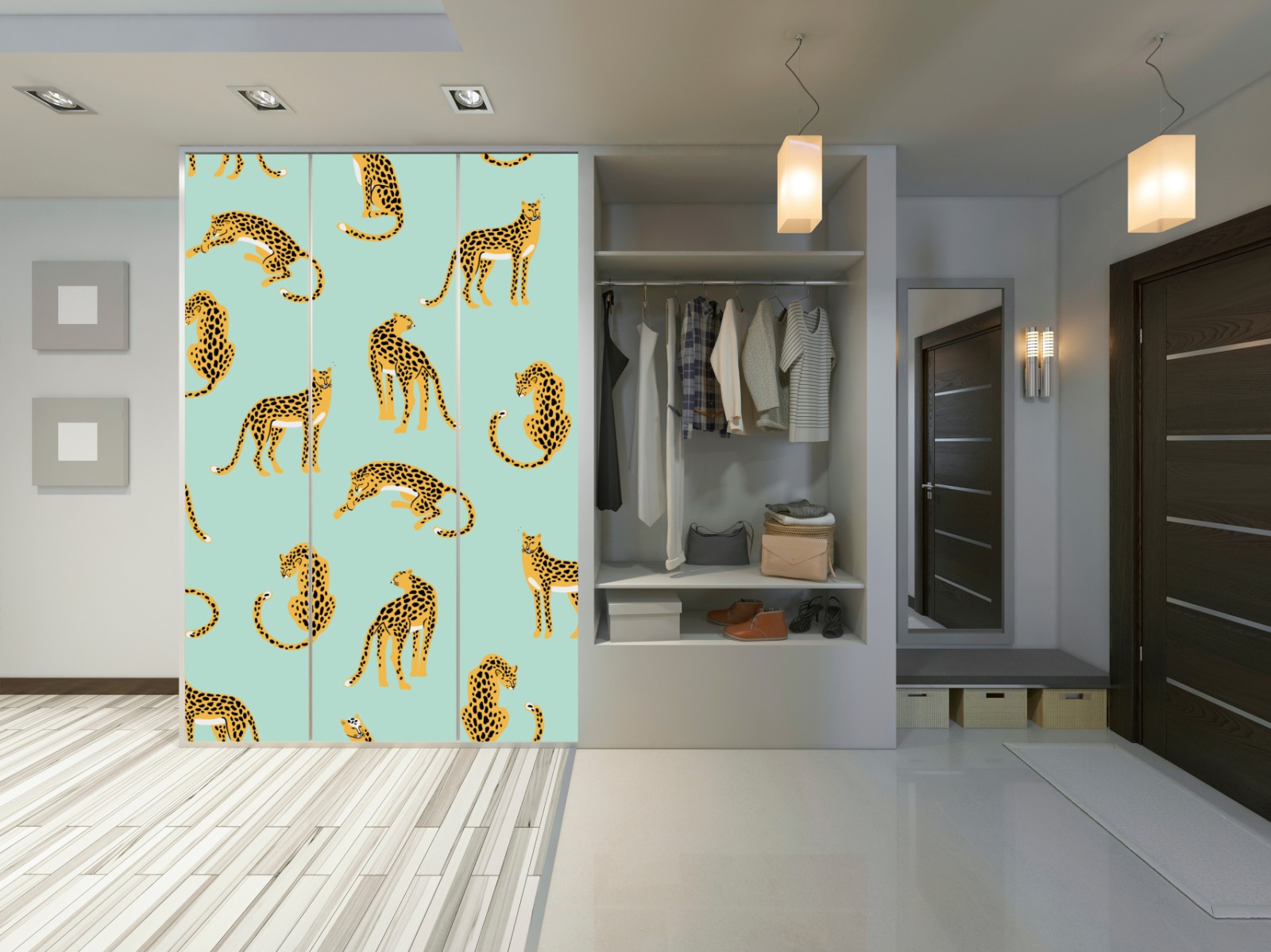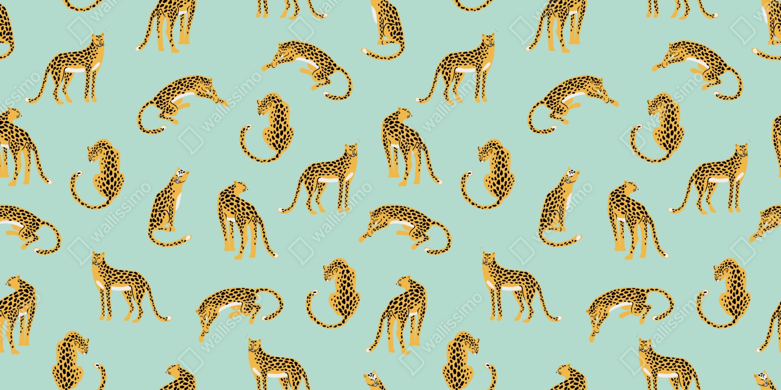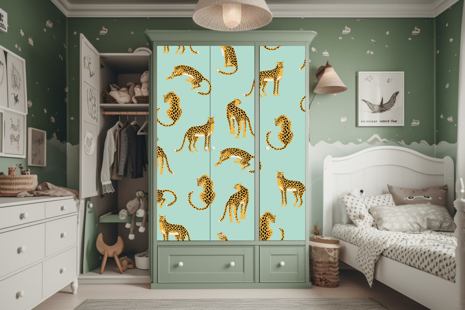 Naklejka na szafę Zabawny wzór gepardów na turkusowym tle