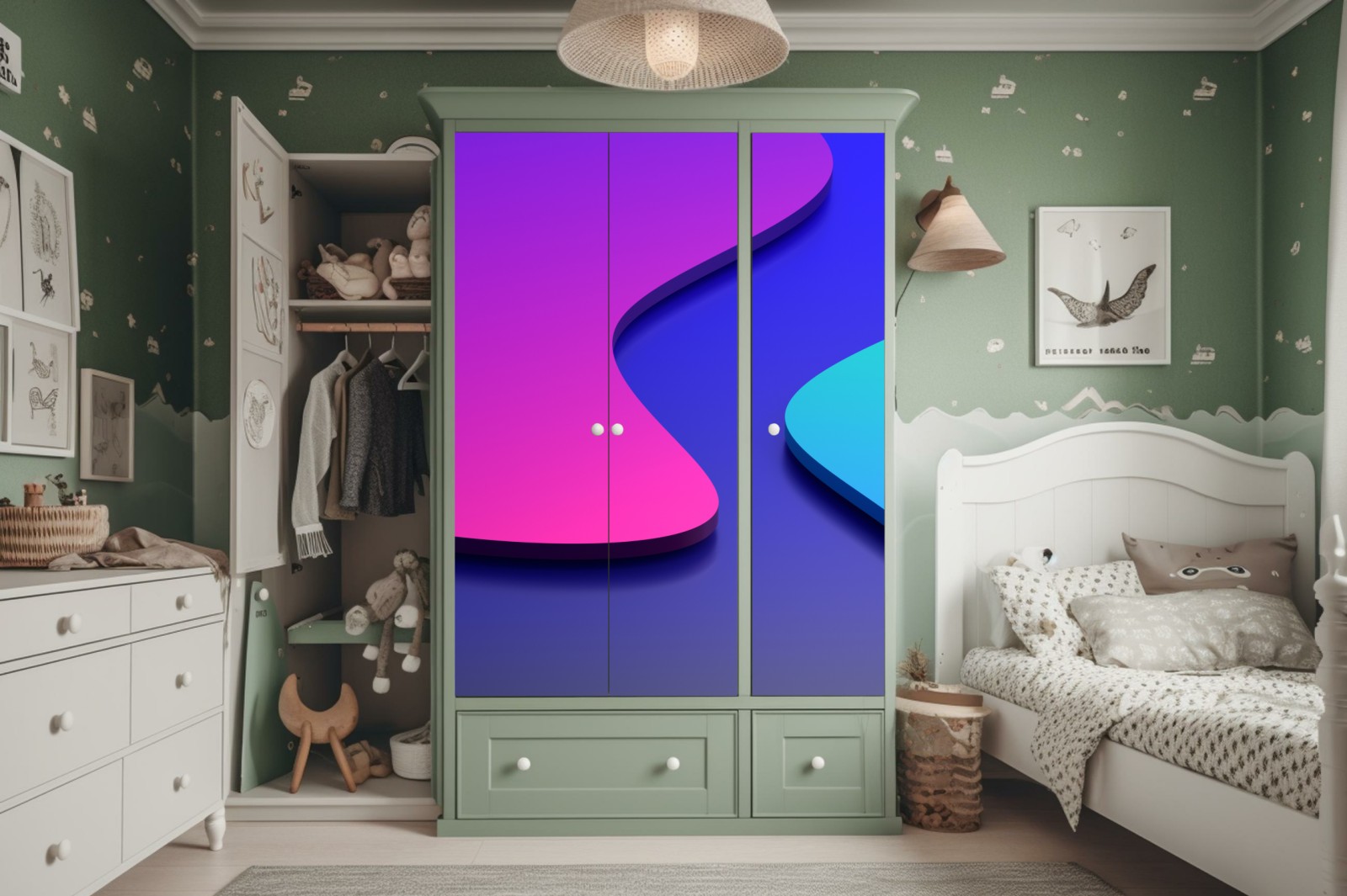 Design i funkcjonalność: Naklejki nie tylko zdobią, ale także chronią powierzchnię szafy, przedłużając jej żywotność.