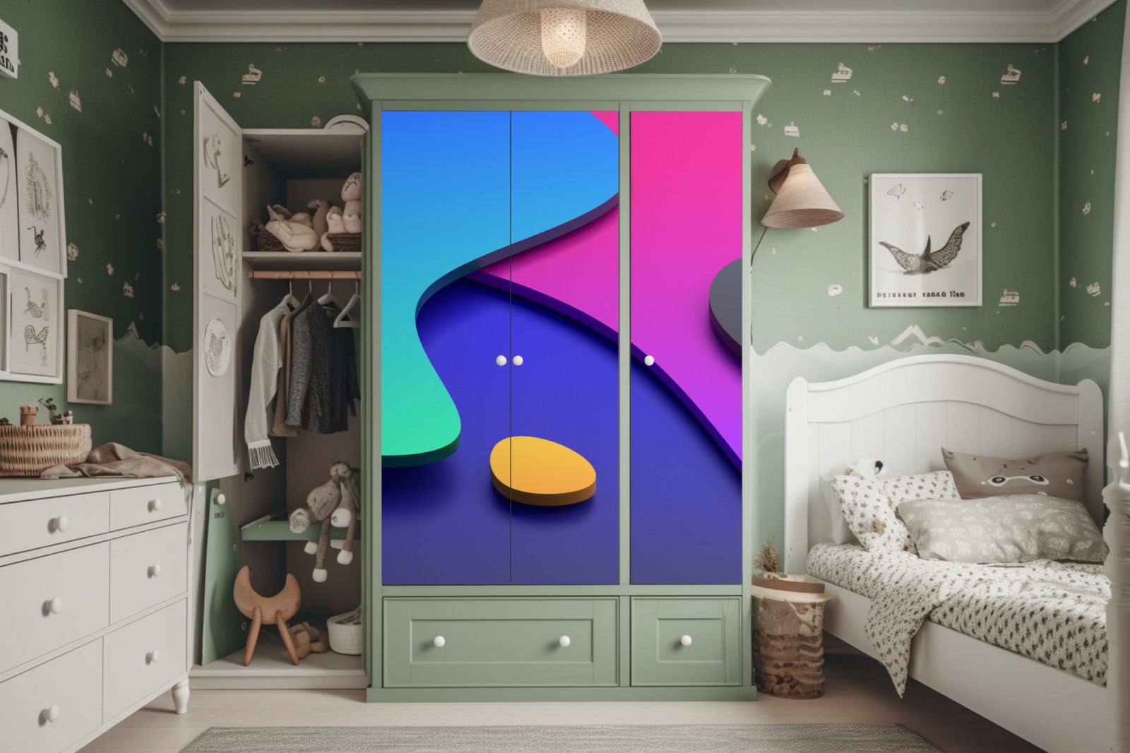 Design i funkcjonalność: Naklejki nie tylko zdobią, ale także chronią powierzchnię szafy, przedłużając jej żywotność.