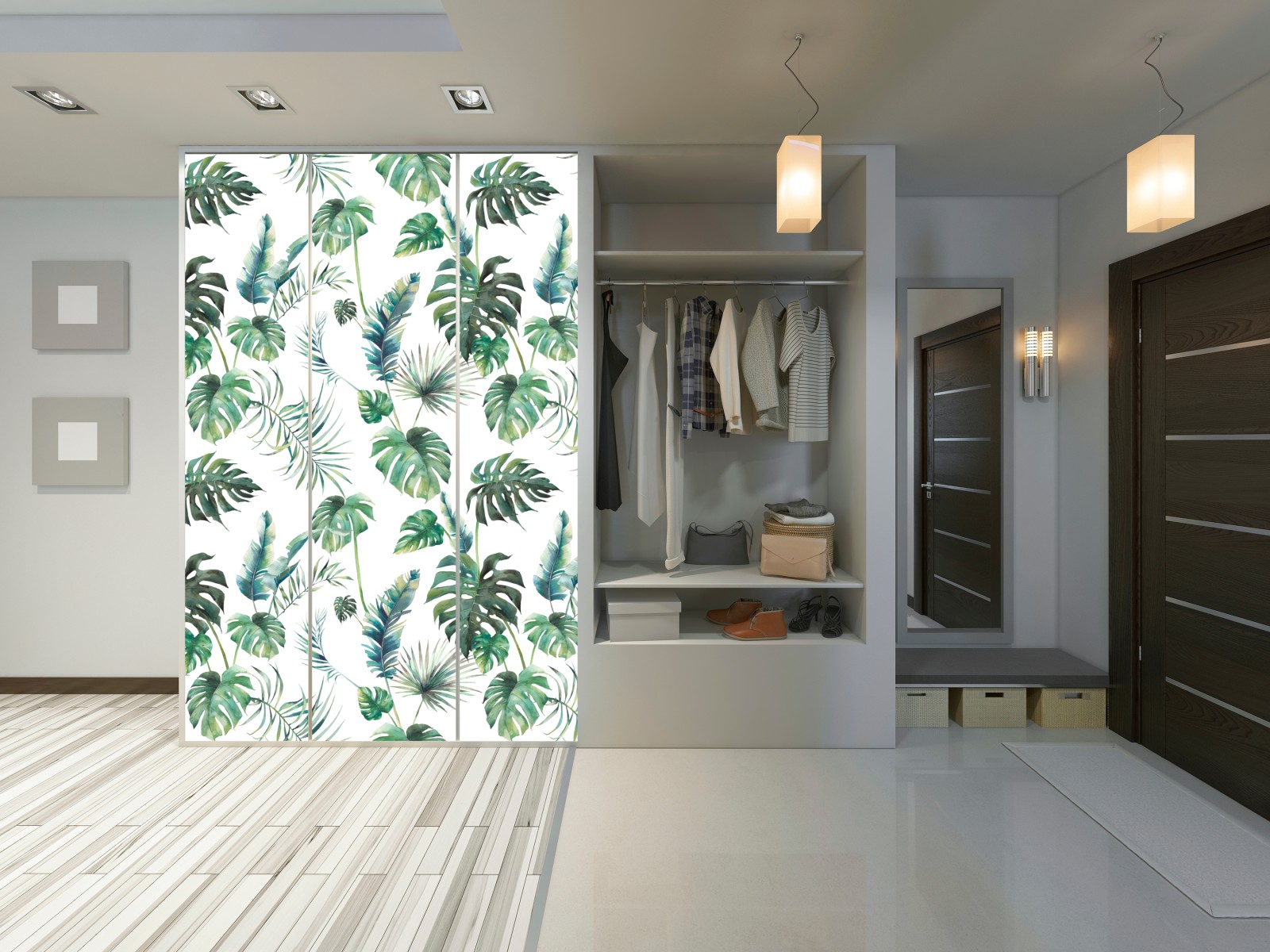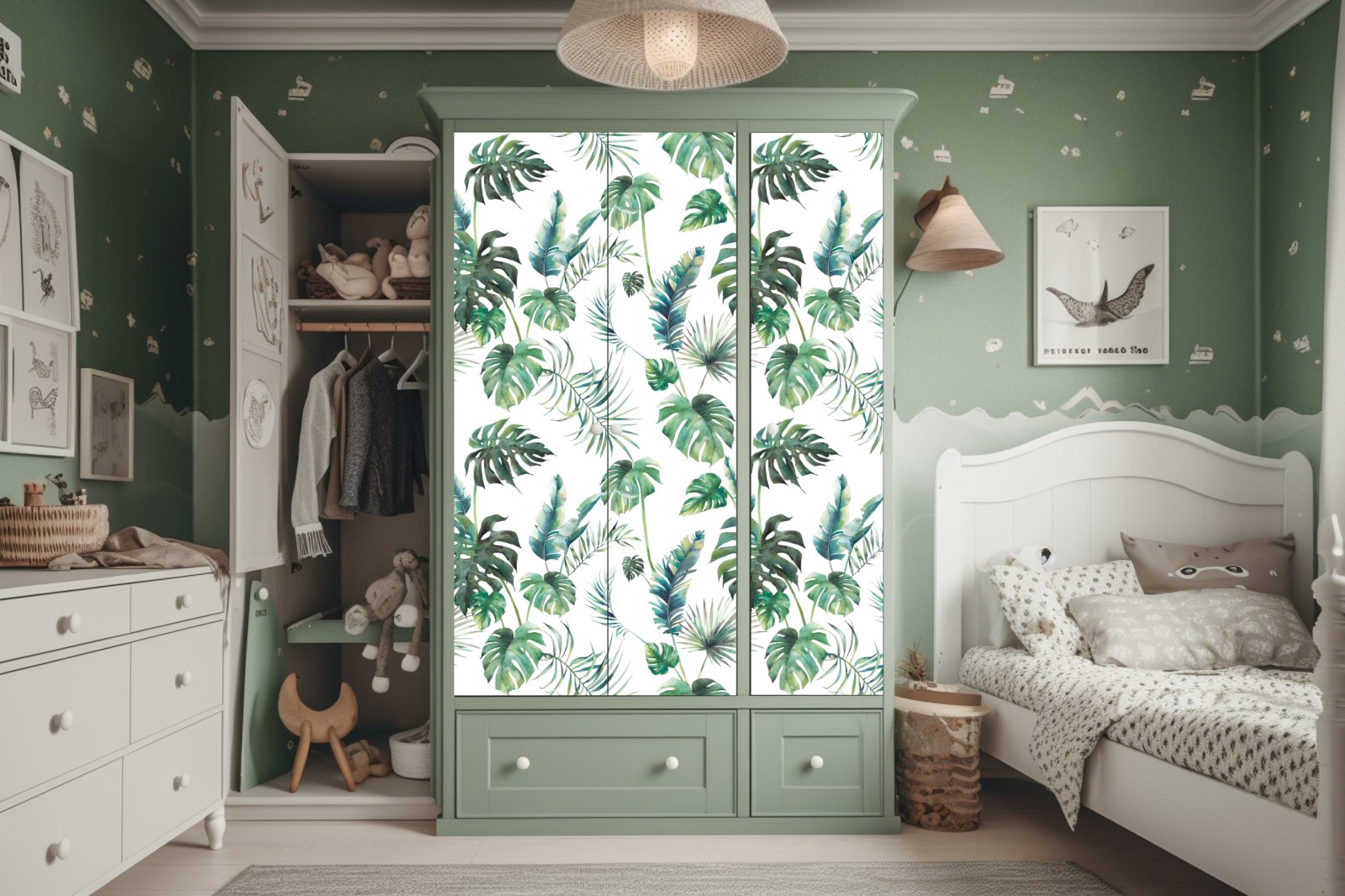 Naklejka na szafę Akwarelowy wzór tropikalnych liści