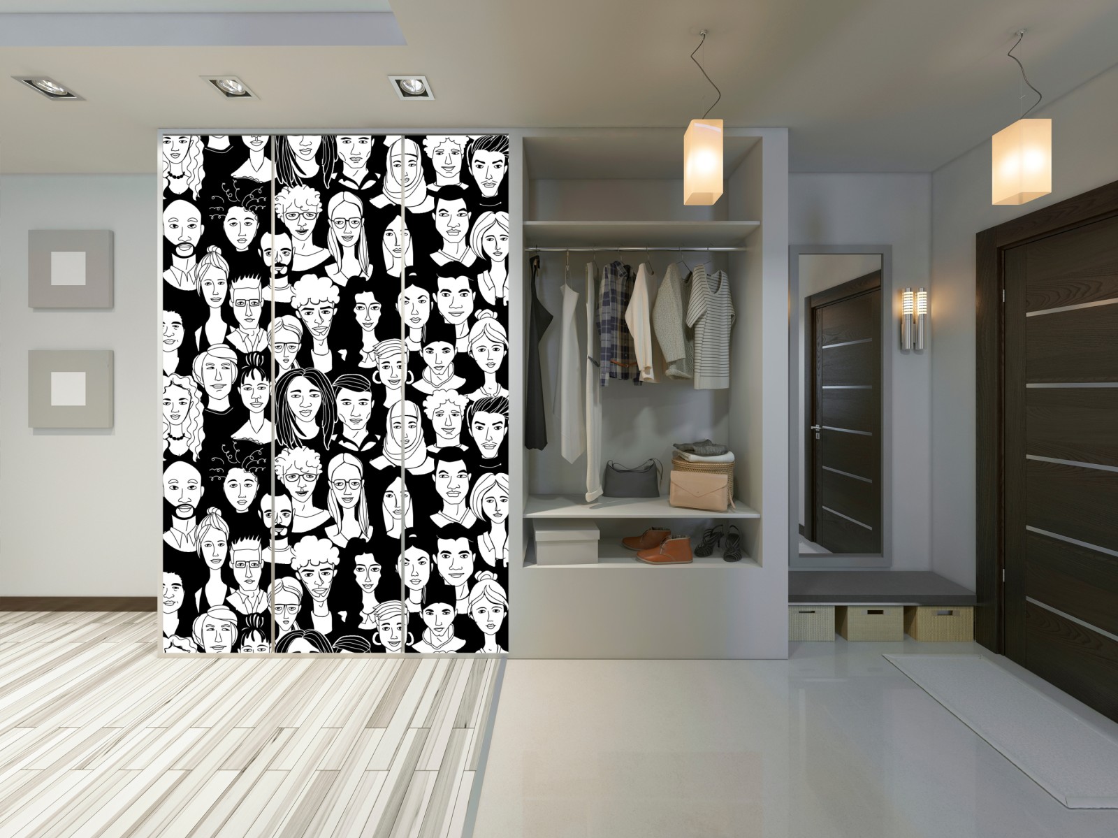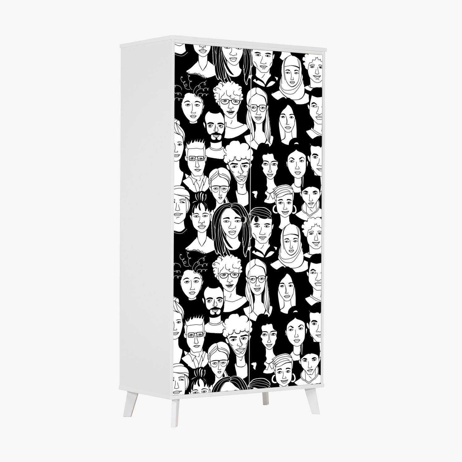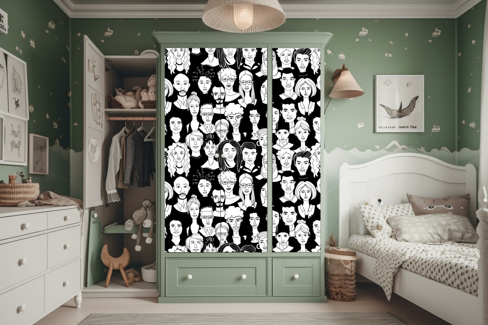 Naklejka na szafę Wzór z różnorodnymi twarzami