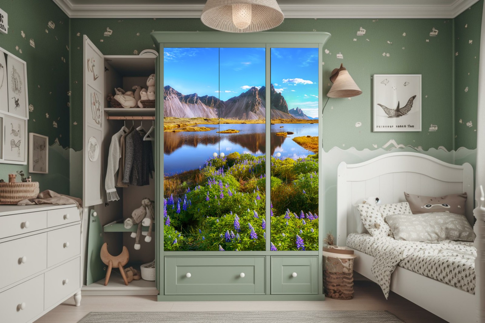 Naklejka na szafę Żywe łubinowe łąki przy Vestrahorn, Islandia