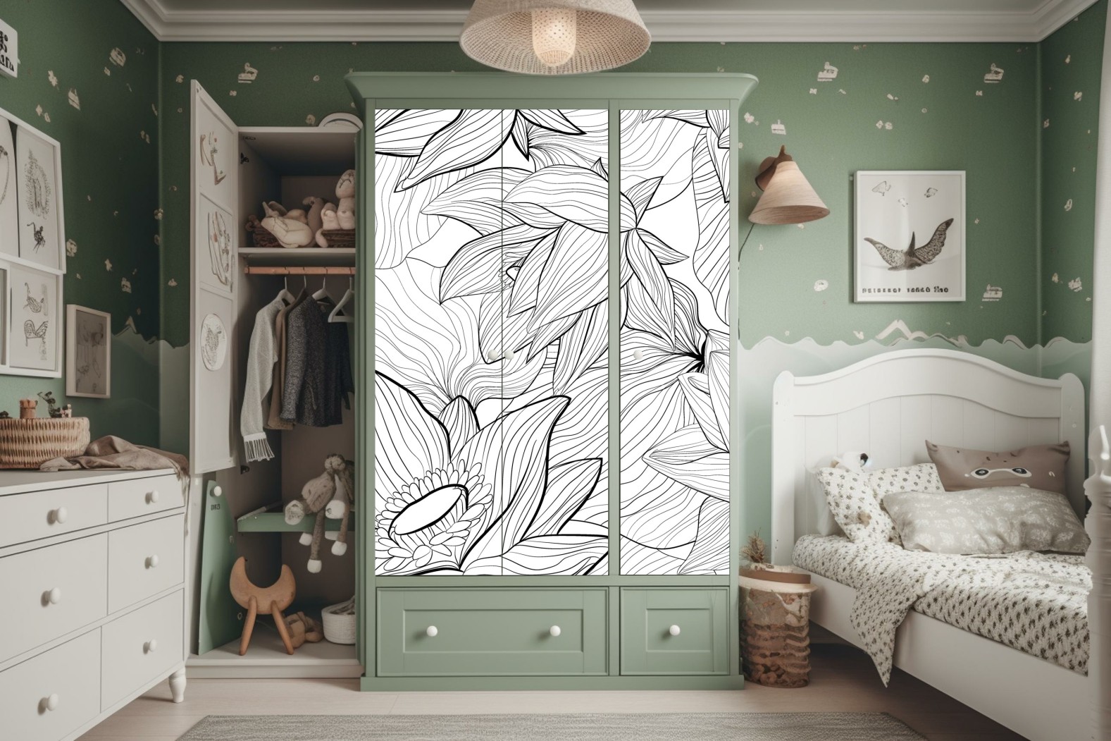 Design i funkcjonalność: Naklejki nie tylko zdobią, ale także chronią powierzchnię szafy, przedłużając jej żywotność.