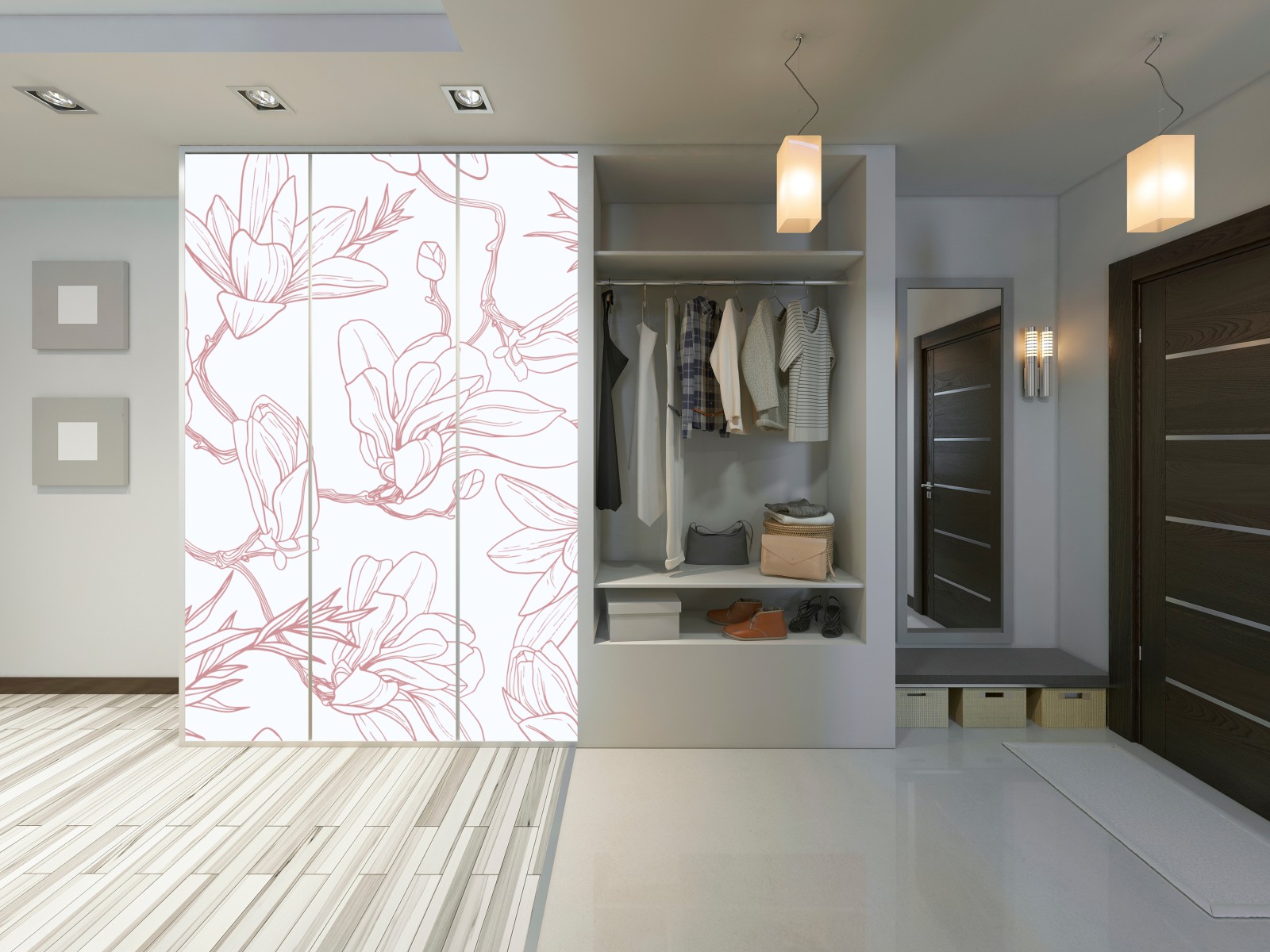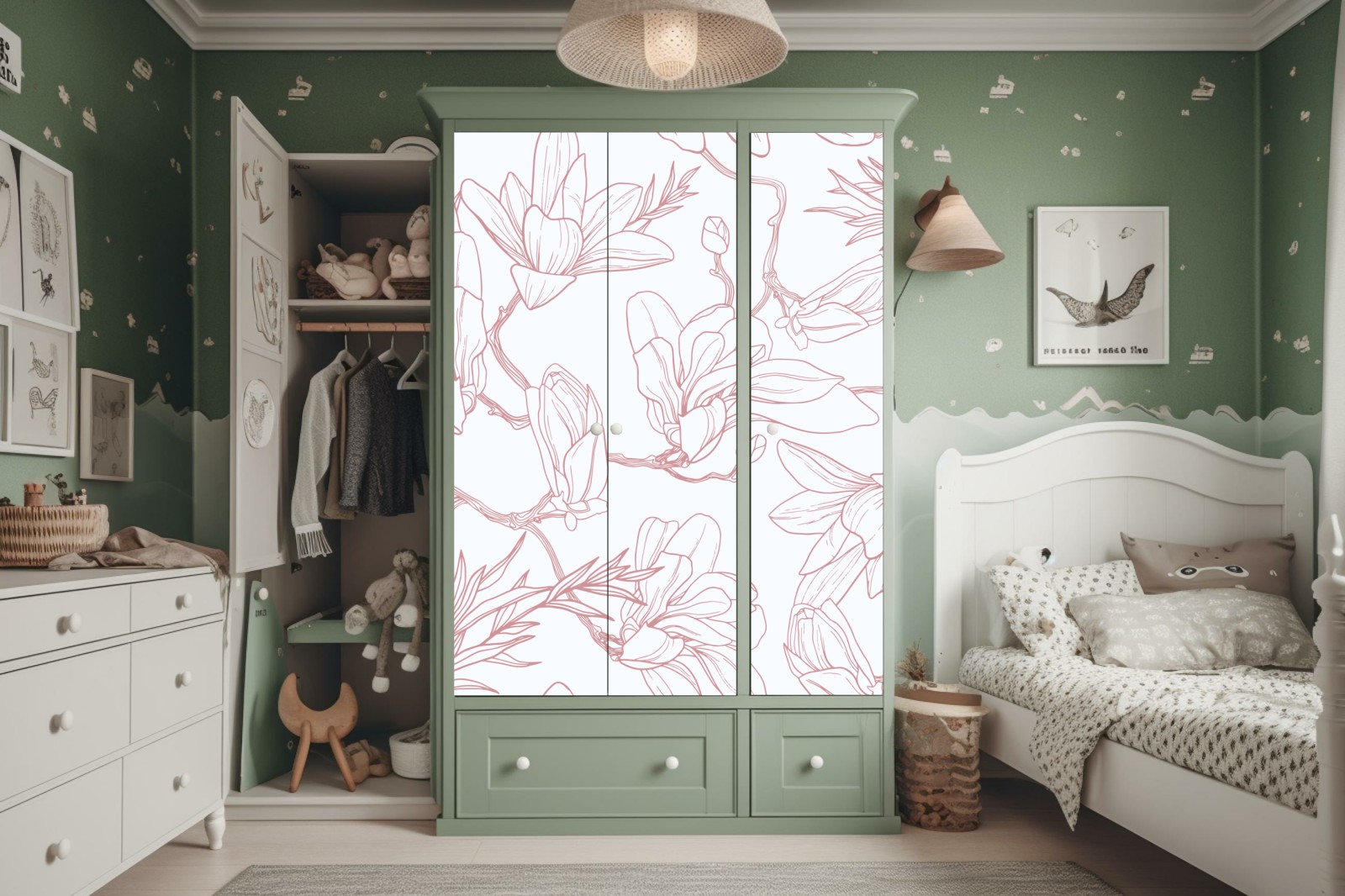 Naklejka na szafę Delikatny wzór magnolii w miękkim różu