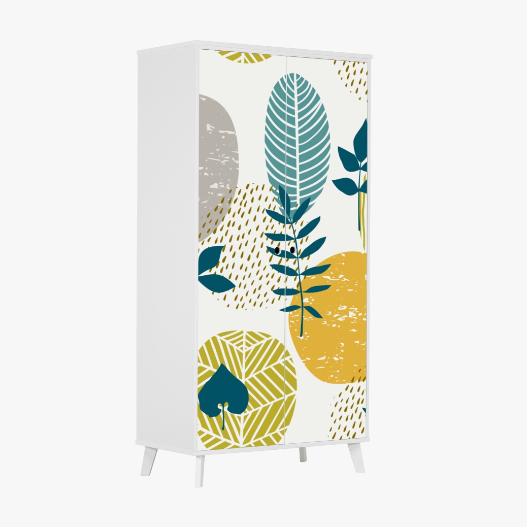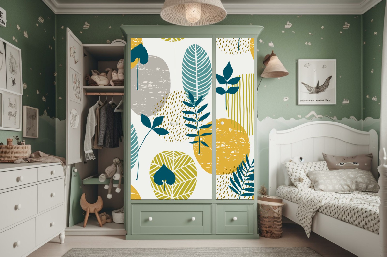 Naklejka na szafę Turkusowo-musztardowy botaniczny wzór