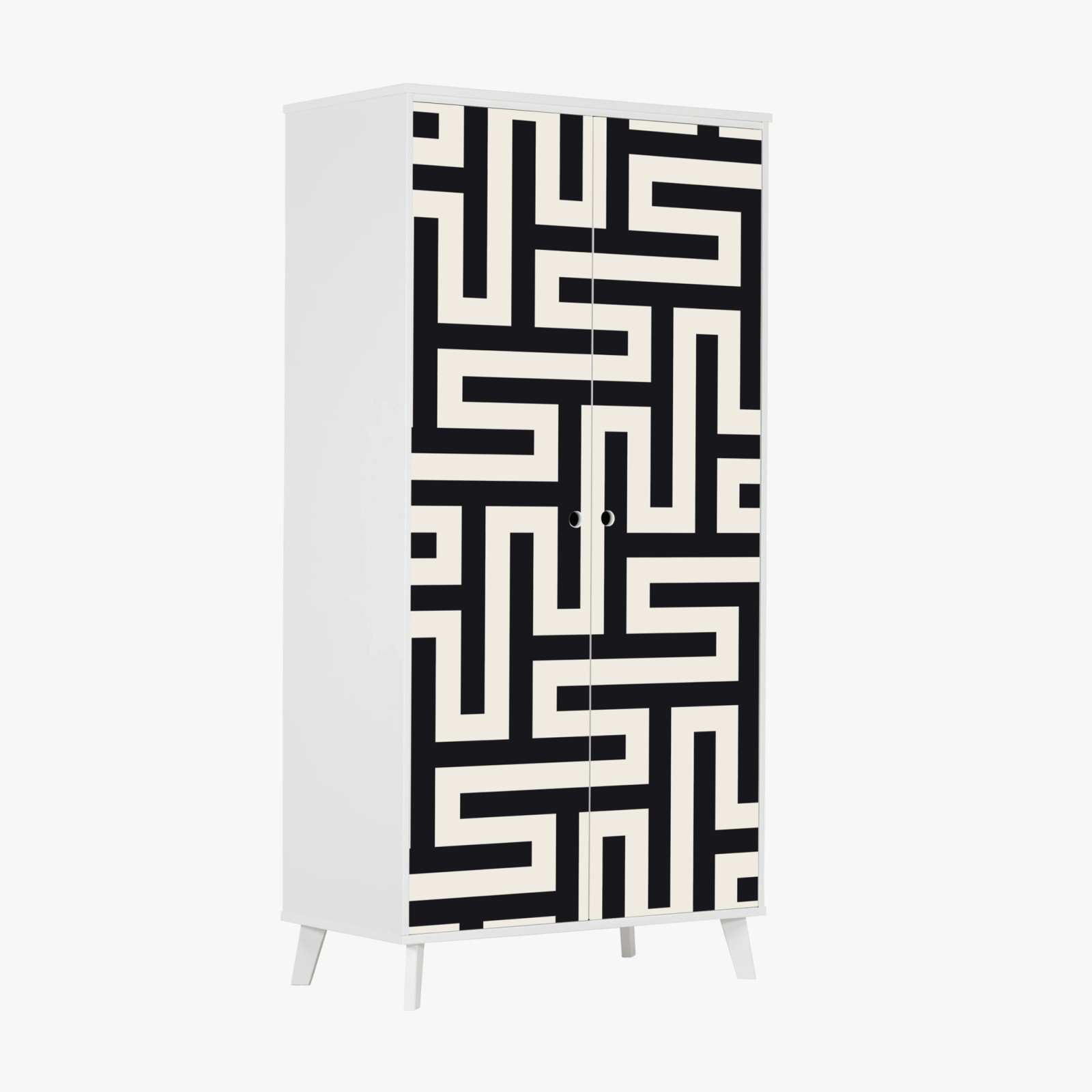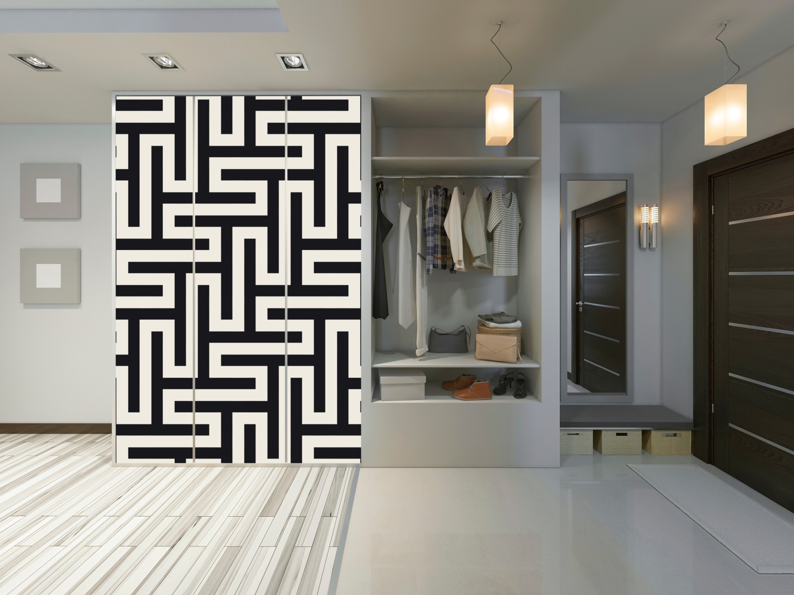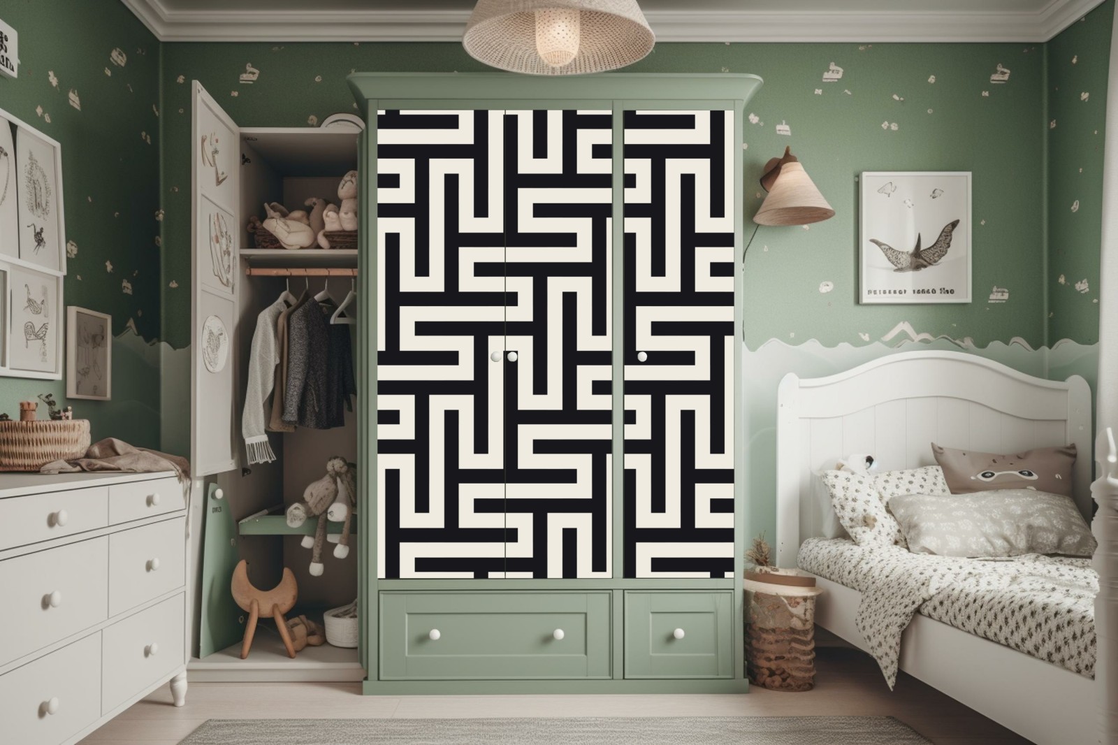 Naklejka na szafę Geometryczny wzór labiryntu w beżu i czerni